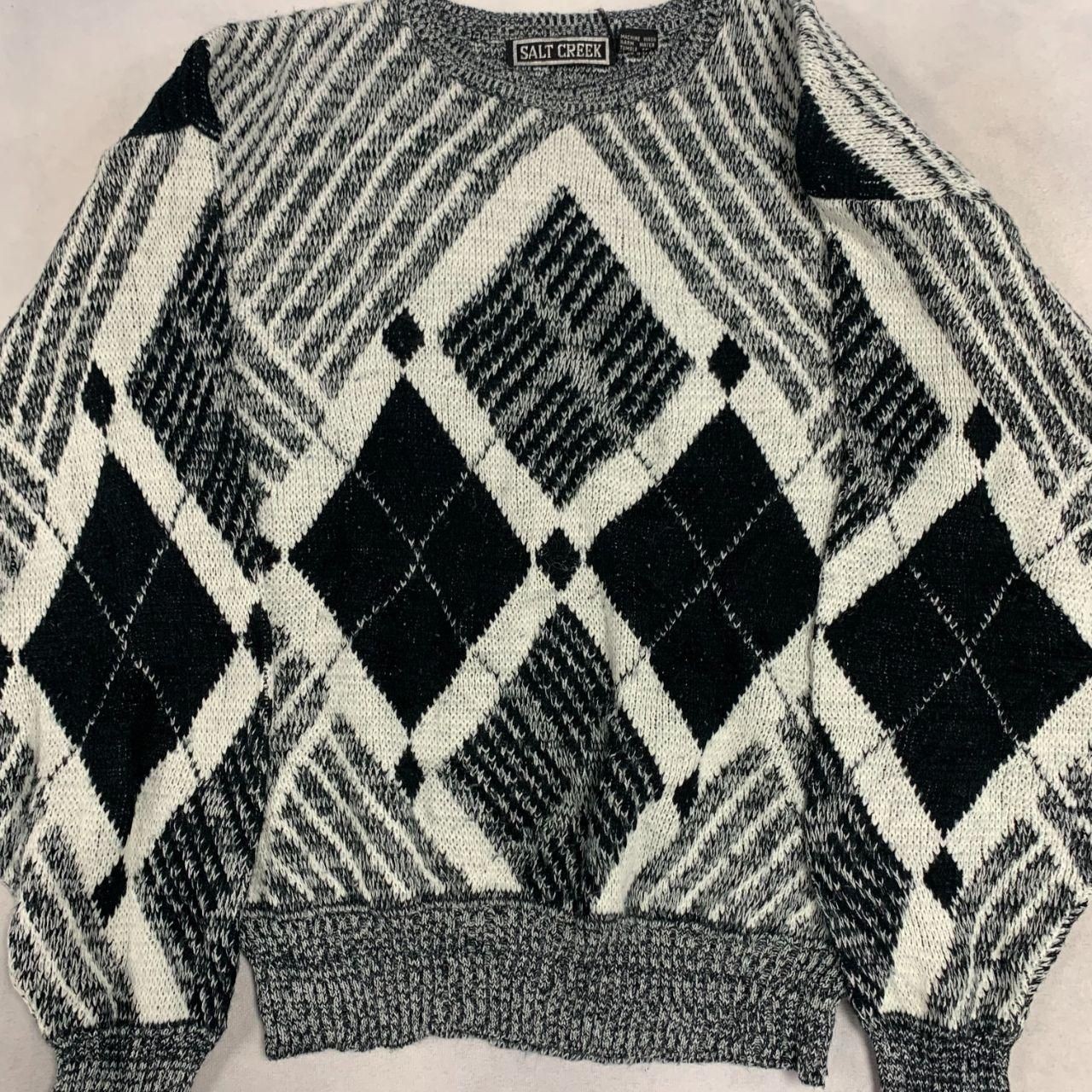 как выглядит Vintage Abstract Knitted Jumper Patterned Grandad Chunky Knit Sweater Mens M фото