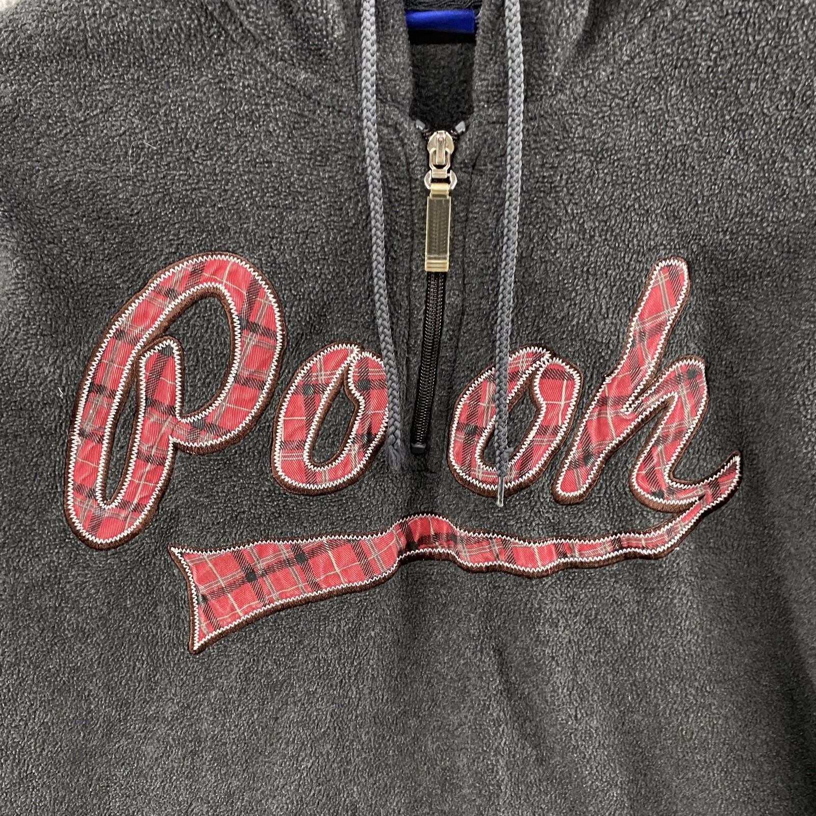 как выглядит VINTAGE Disney Winnie the Pooh Hoodie Women XL Gray Fleece Half Zip Y2K Graphic фото