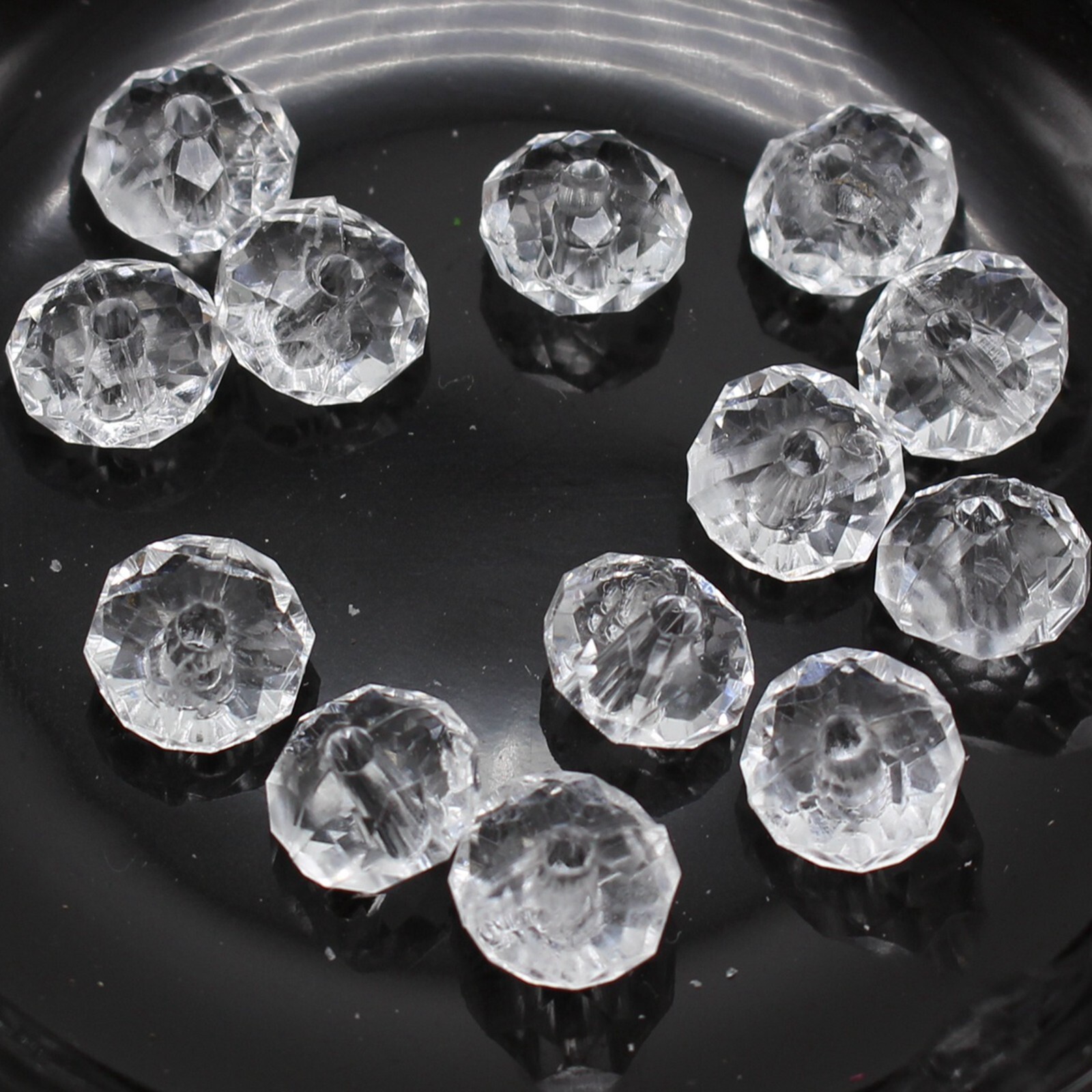 как выглядит 130pcs 6x10mm Clear Faceted Rondelle Beads - Transparent Acrylic Spacer Beads фото
