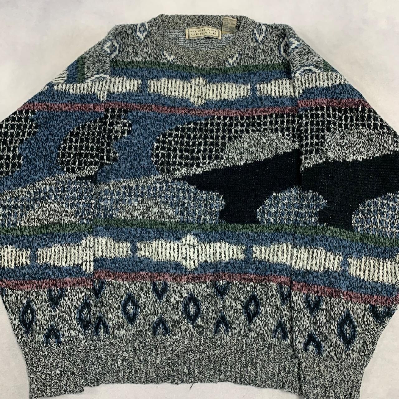 как выглядит Vintage Knitted Jumper Abstract Patterned Grandad Knit Sweater Men