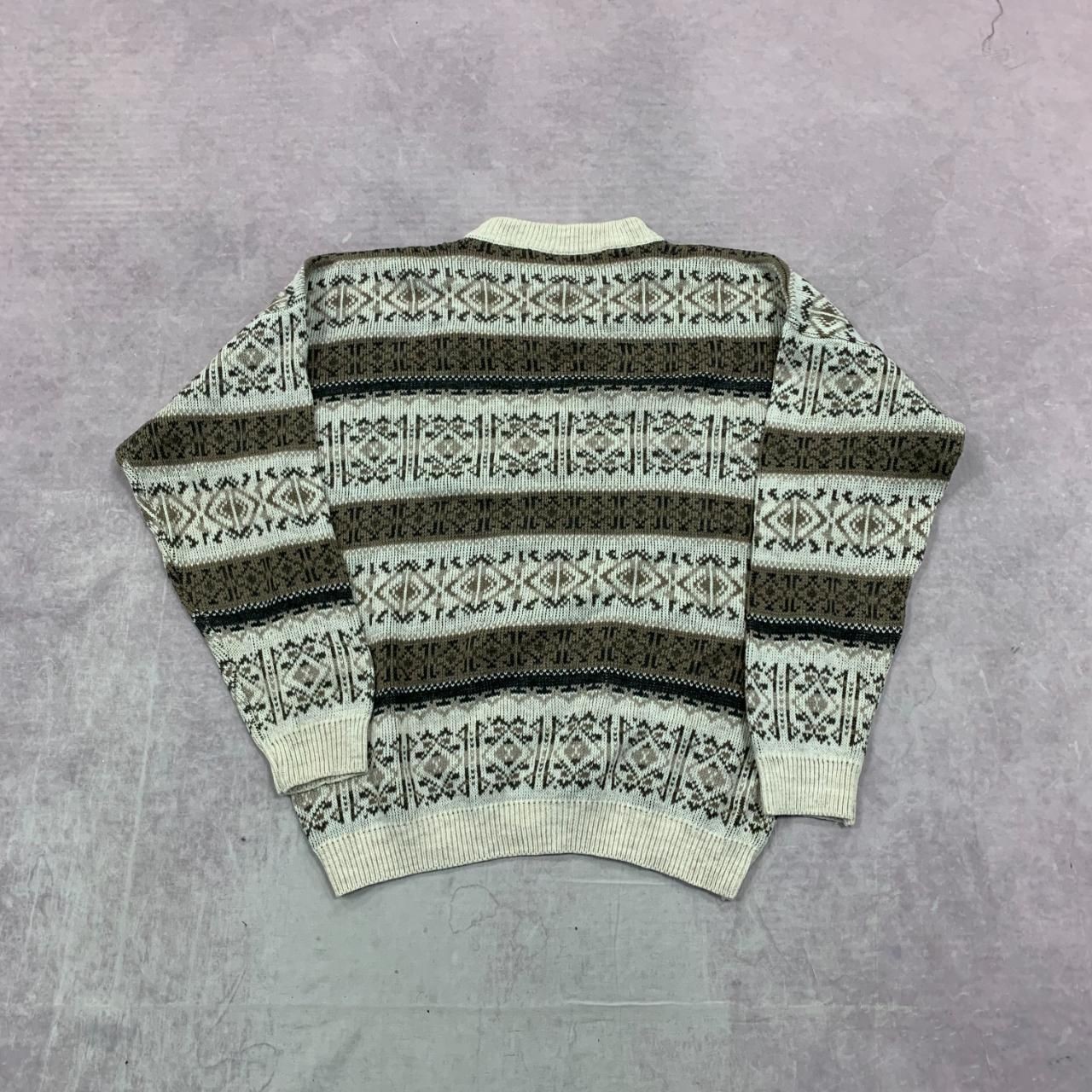 как выглядит Vintage abstract knitted jumper Patterned Grandad chunky knit sweater Mens XL фото