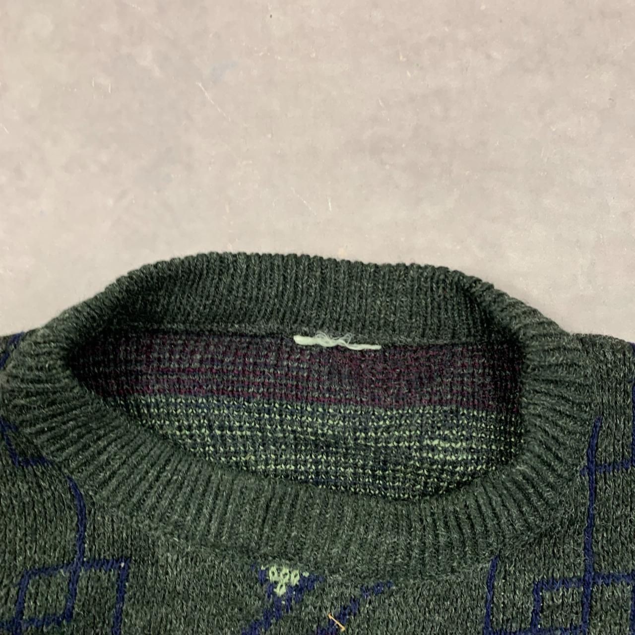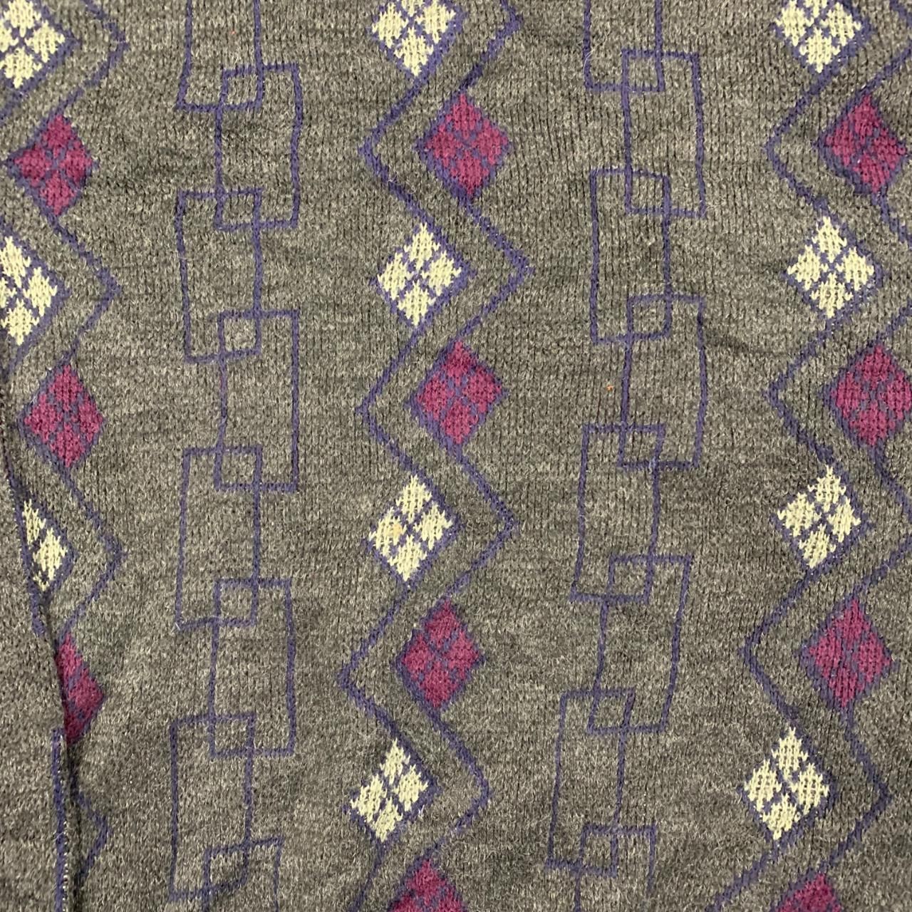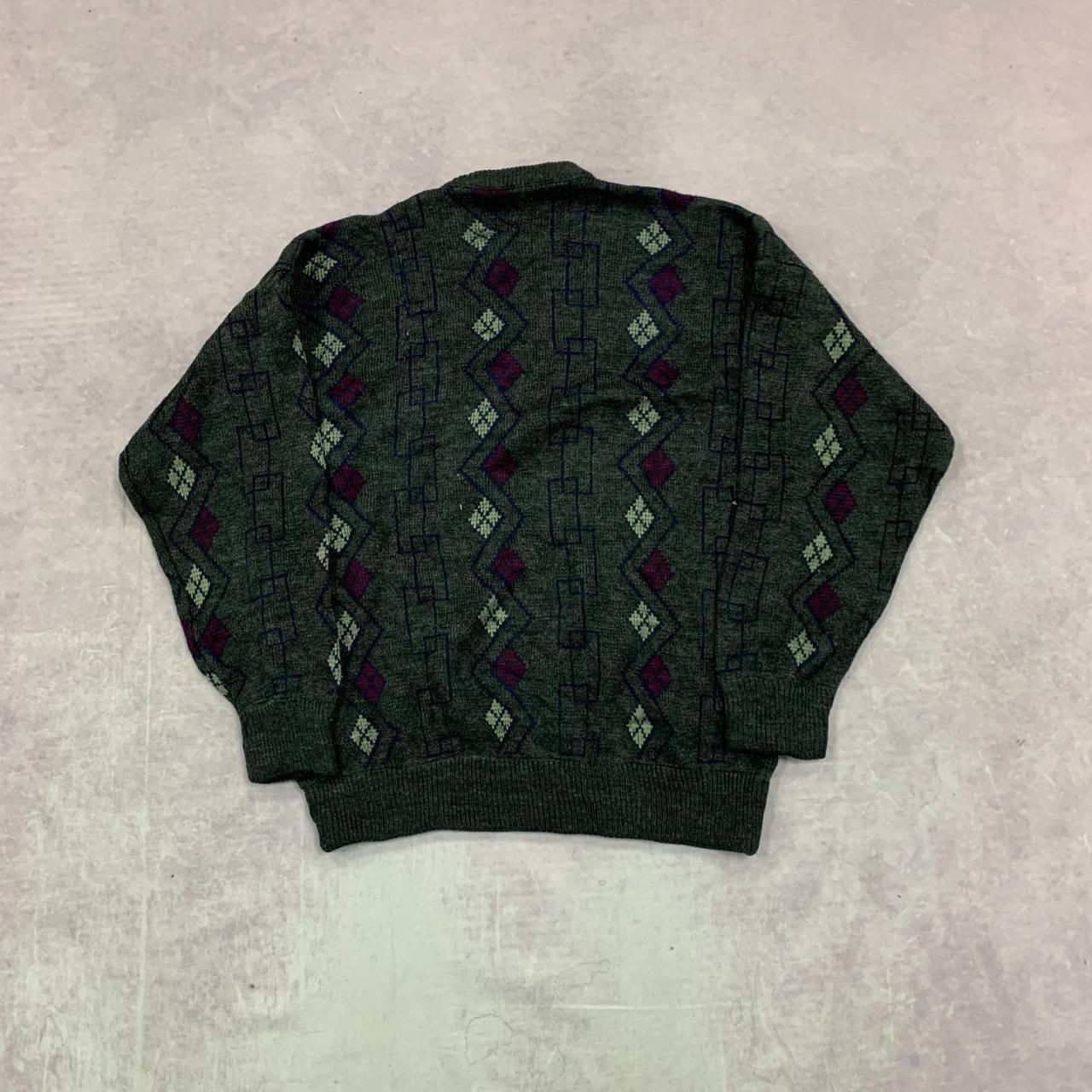 как выглядит Vintage abstract knitted jumper Patterned Grandad chunky knit sweater Mens L фото