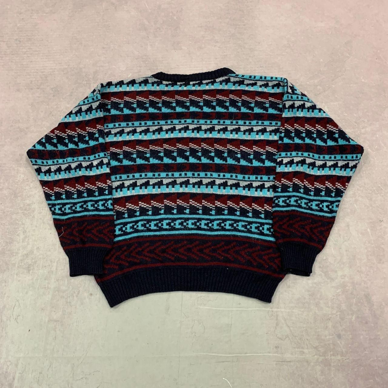 как выглядит Vintage abstract knitted jumper Patterned Grandad chunky knit sweater Mens L фото