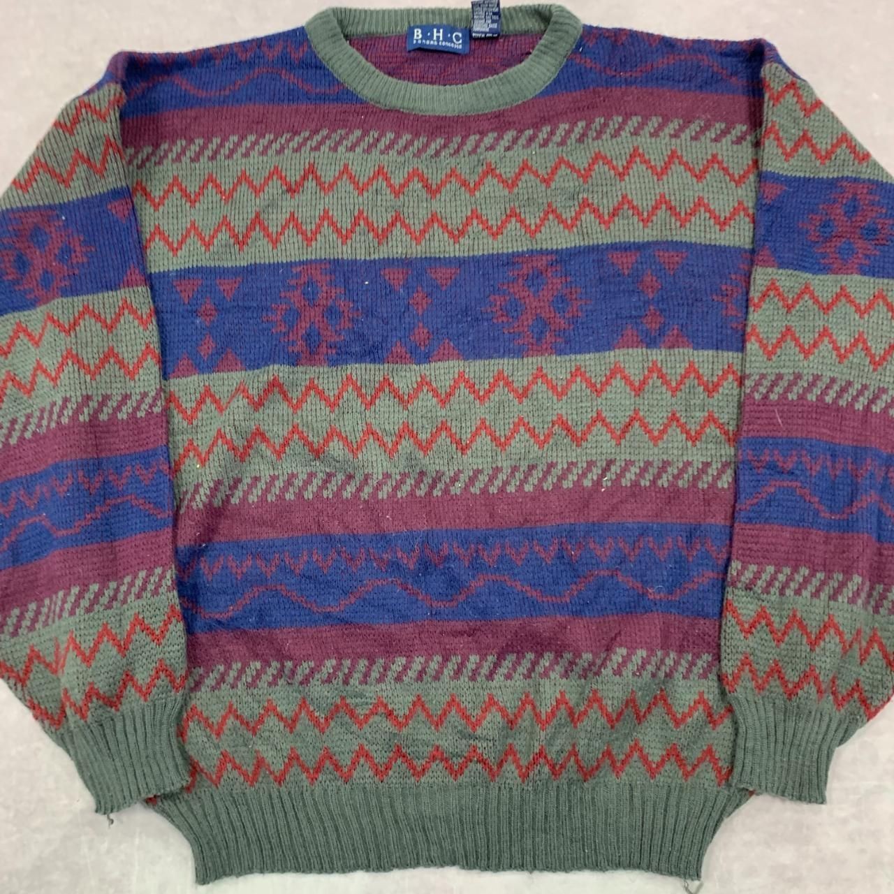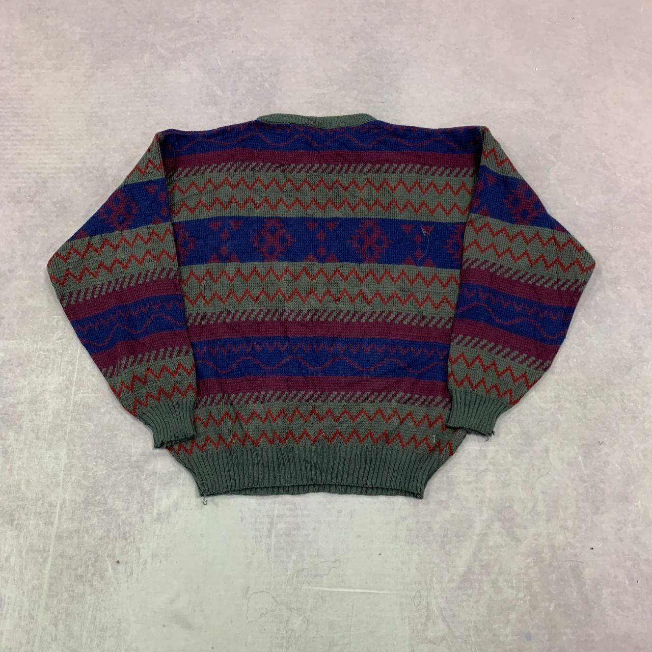 Vintage abstract knitted jumper Patterned Grandad chunky knit sweater Men's L