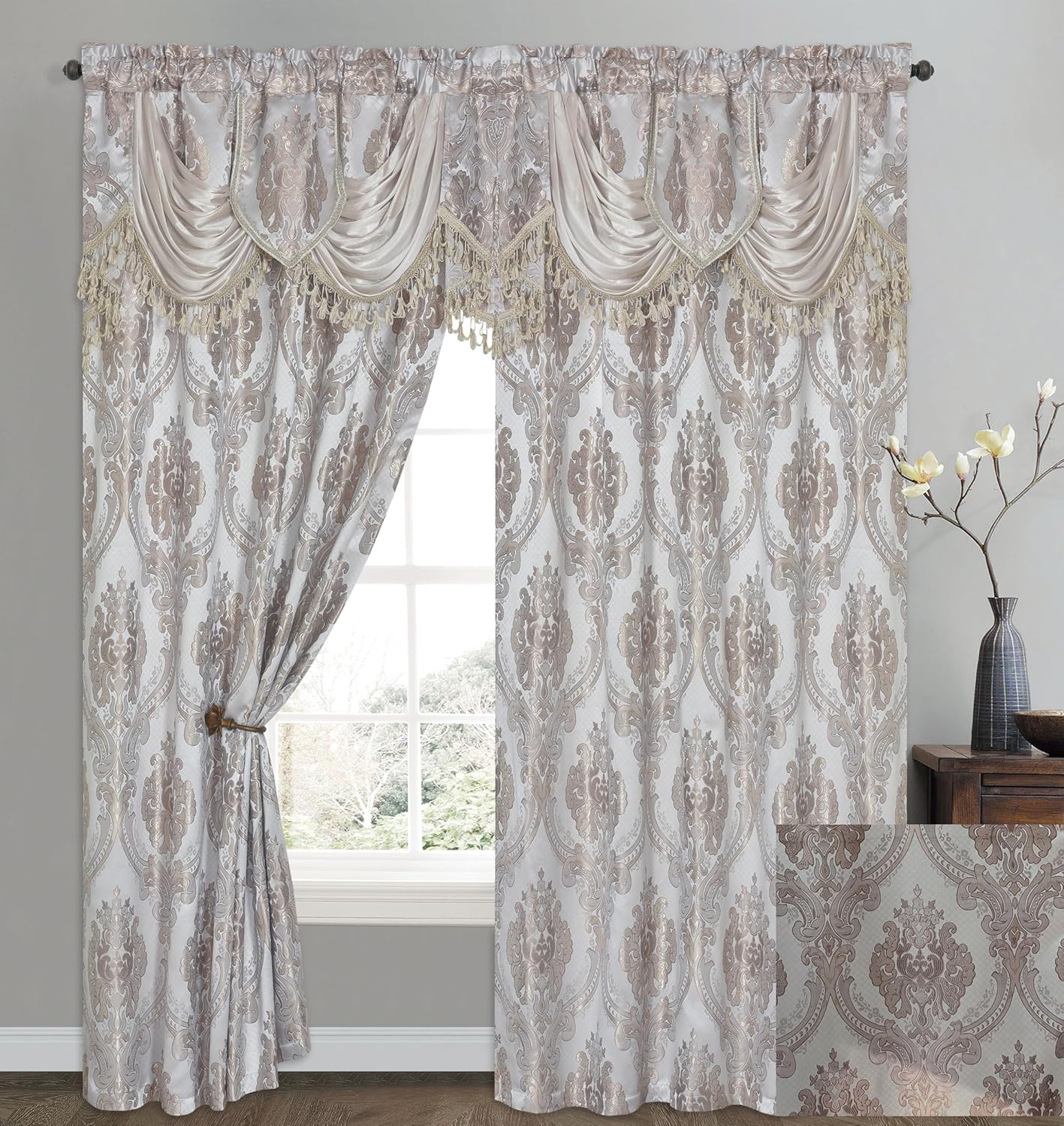 GOHD Luxe Love. Jacquard Window Curtain Panel 54W x 84L Pack of 2 , Sand