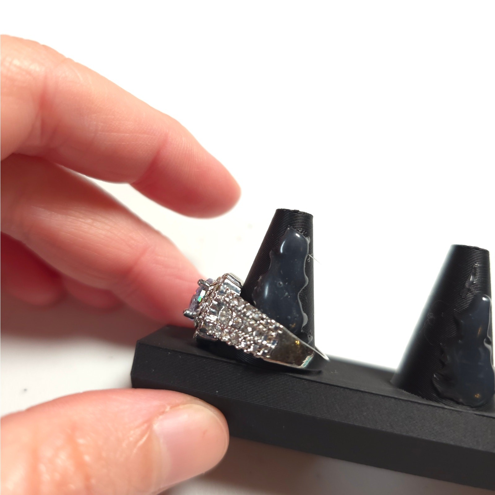 Sterling Silver Glass Rhinestone Ring Size 7 Light Blue On Middle Stone
