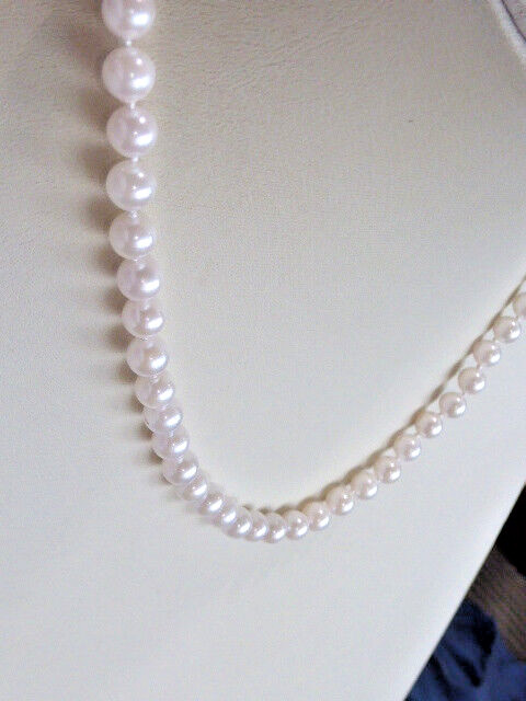 VINTAGE 18 6. MM CULTURED PEARL STRUNG NECKLACE AKOYA PEARLS STERLING CLASP