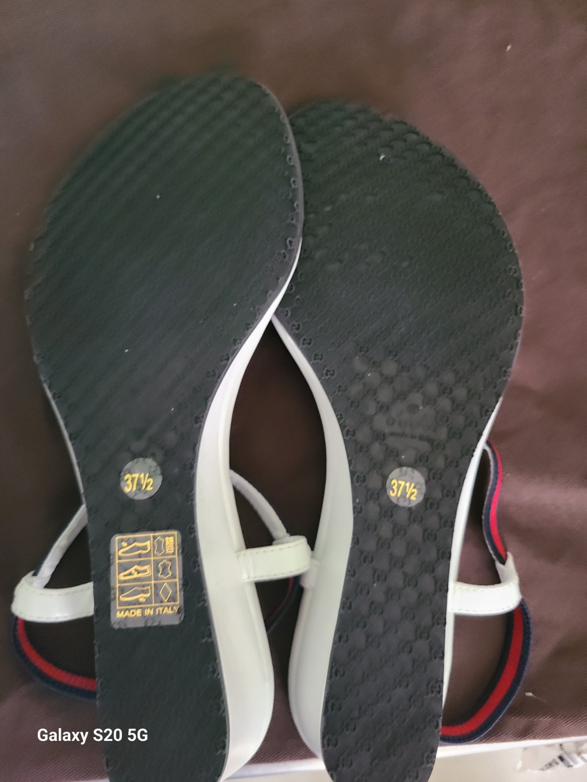 как выглядит White Gucci Leather thongs sandals US size 7-EU Size 37.5 NEW фото