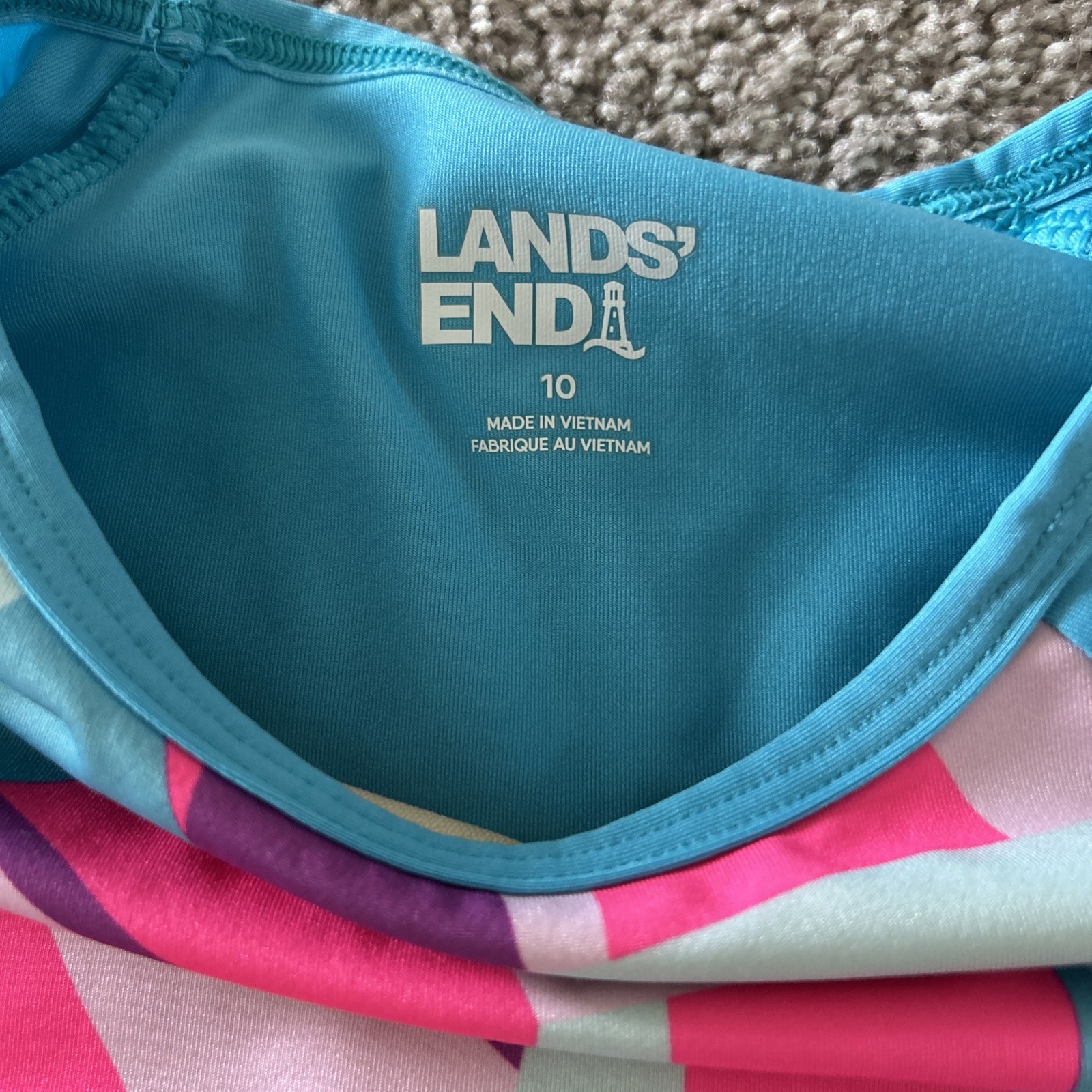 как выглядит Lands End Girls 10 Swimsuit Set 3-piece with Rash Guard фото