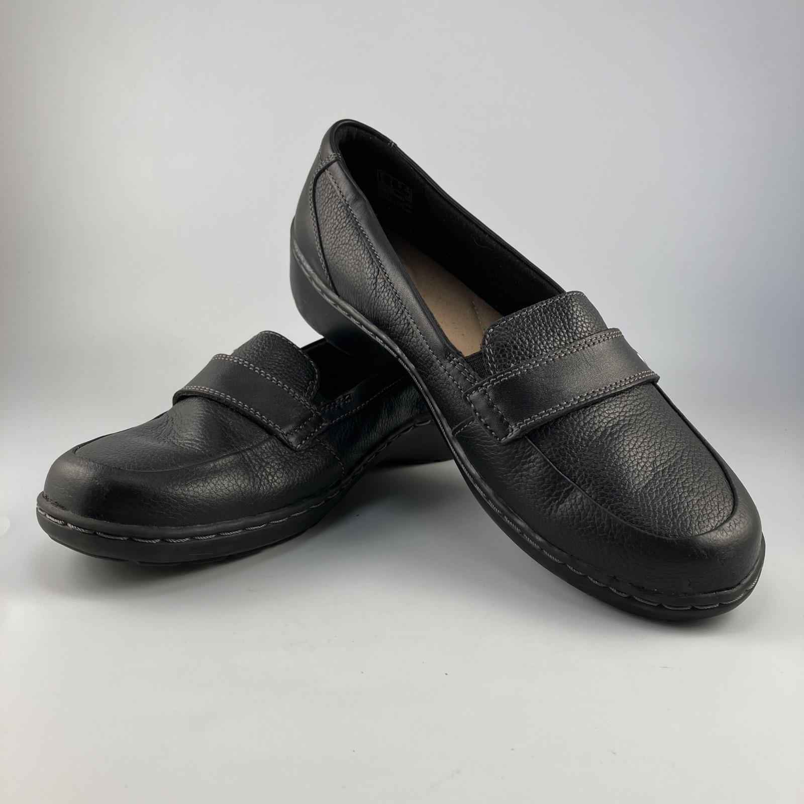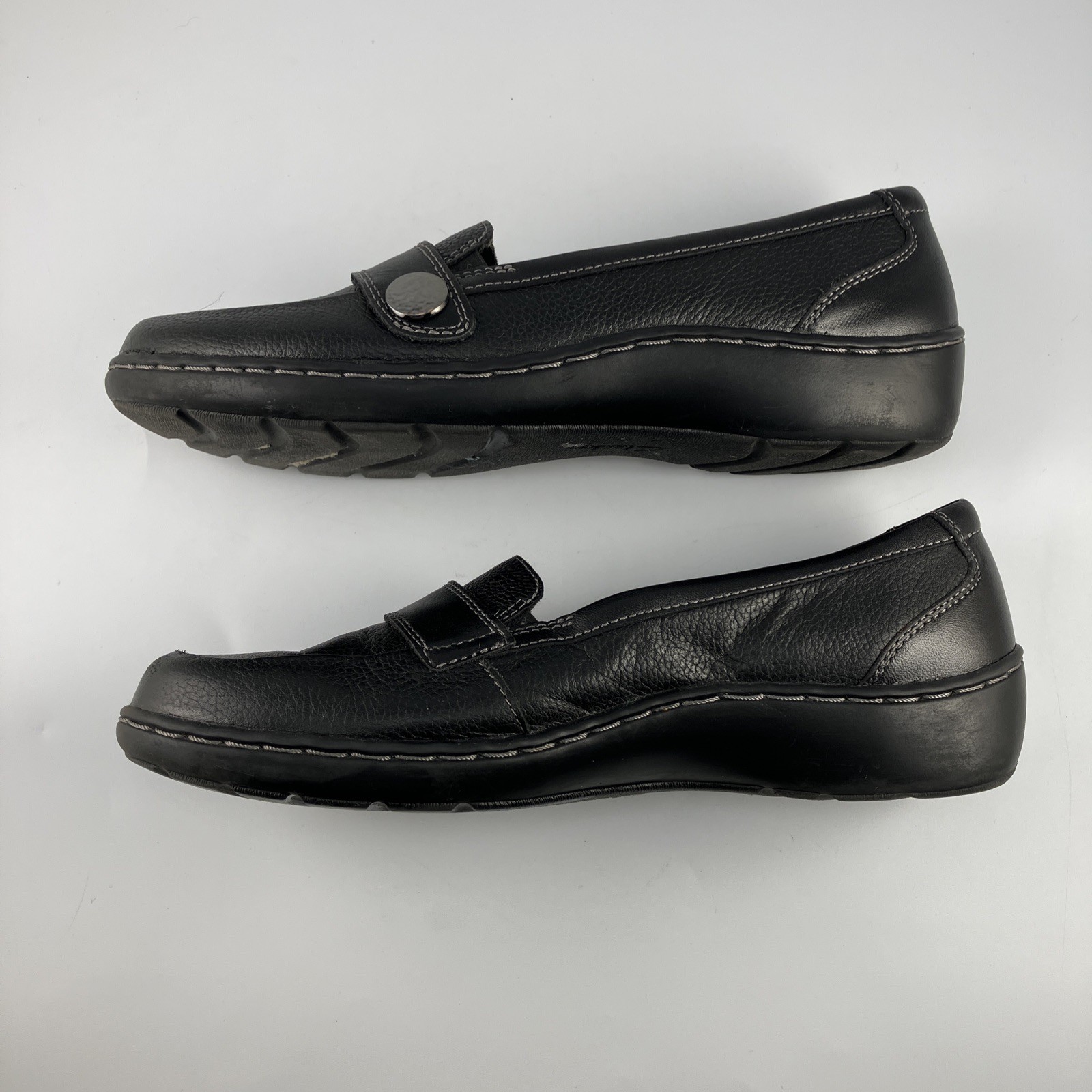 COLLECTION CLARKS Womens Black Pebbled Leather Slip On Loafers Shoes SZ 8 M