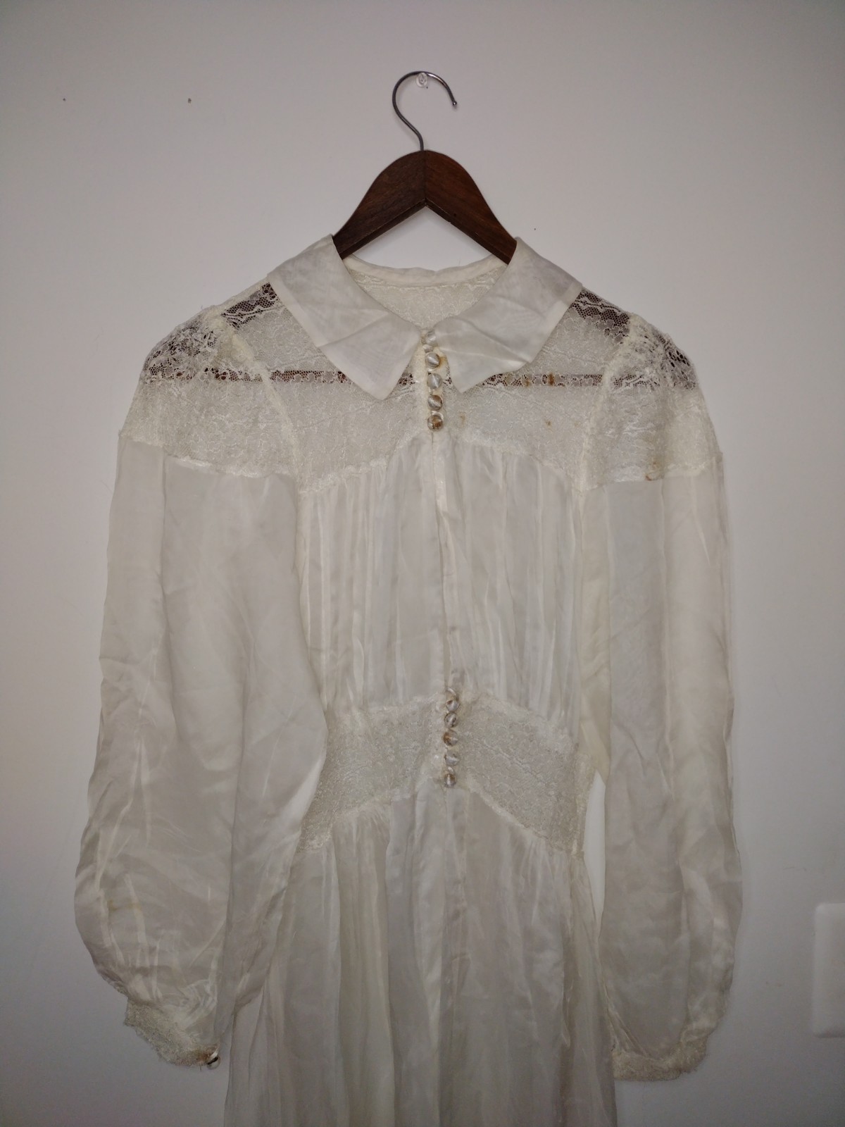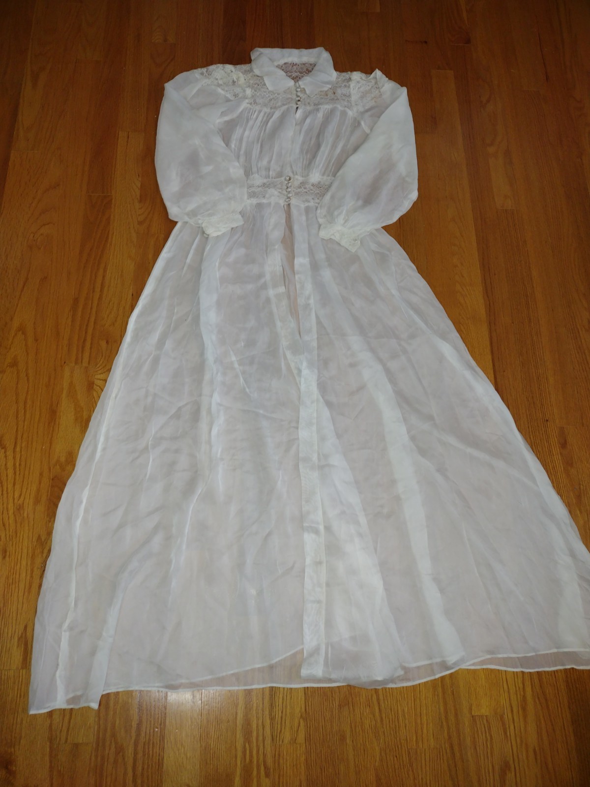 как выглядит Antique Edwardian Cotton and Lace Tea Gown Dress Victorian 1900