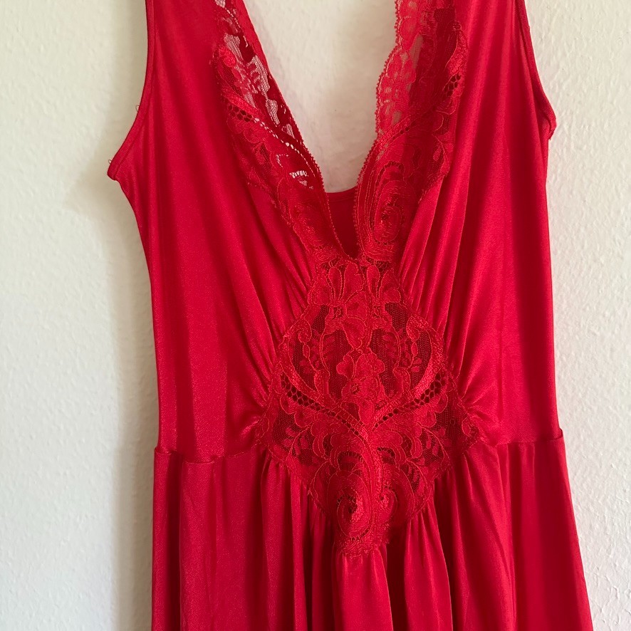 как выглядит Vintage Olga Red Maxi Lace Slip Dress M Sirencore Hollywood Glam Nightgown фото