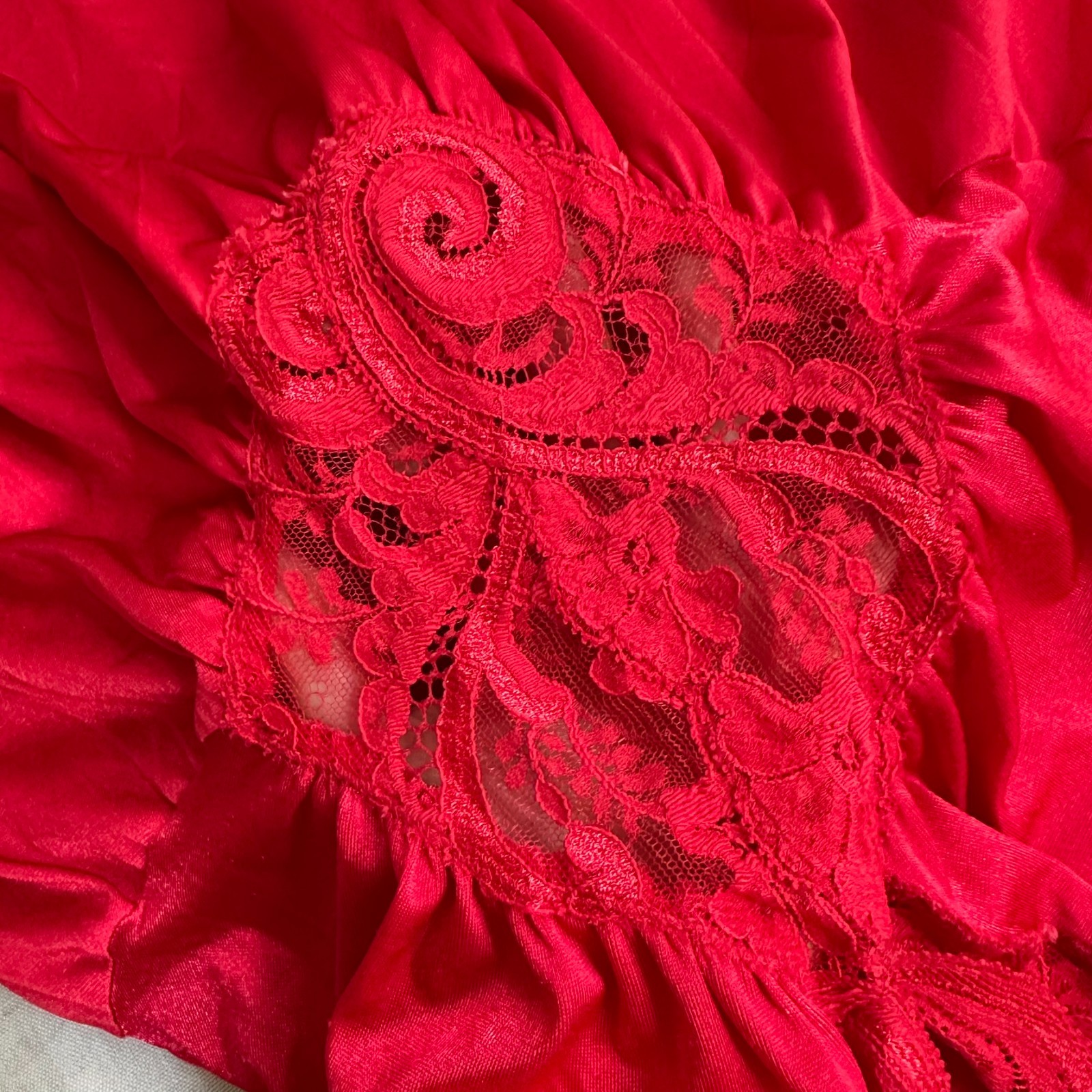 Vintage Olga Red Maxi Lace Slip Dress M Sirencore Hollywood Glam Nightgown