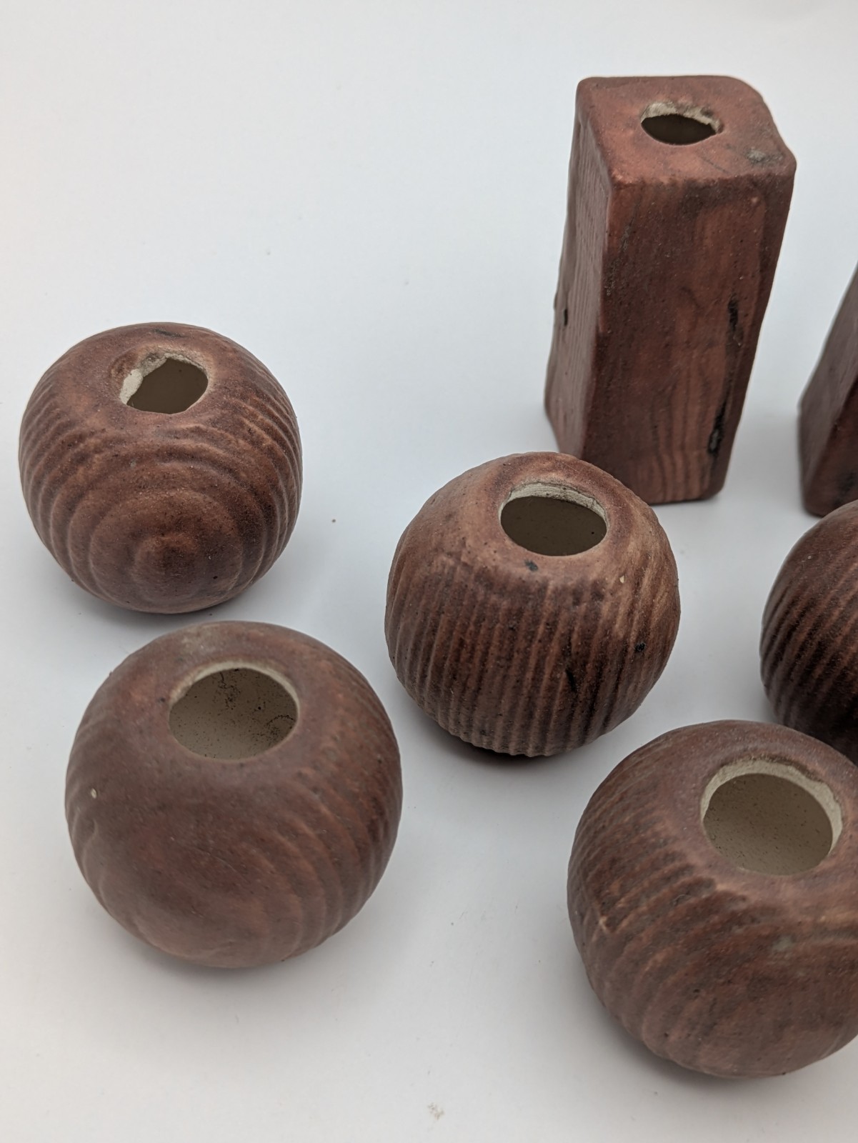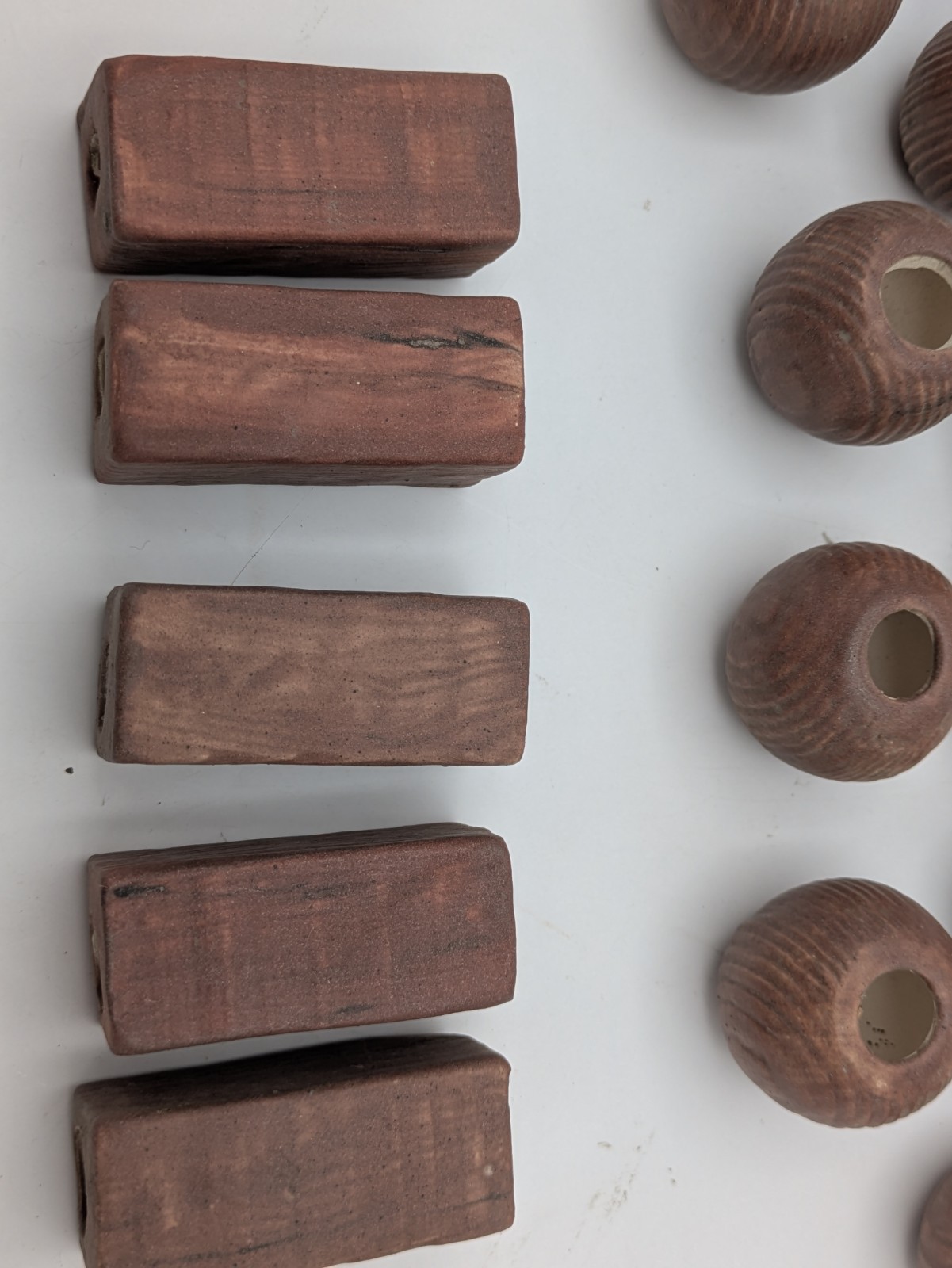 15 Vintage Ceramic Macrame Beads Large Brown Wooden Likeness