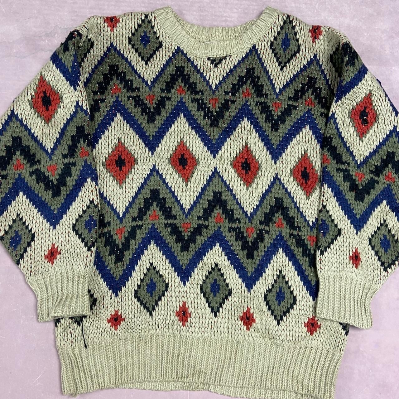 как выглядит Vintage Knitted Jumper Abstract Patterned Grandad Knit Sweater Men