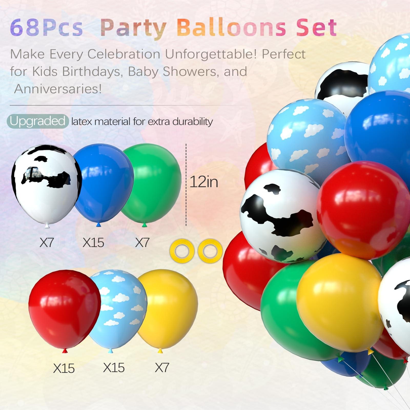 как выглядит Toy Inspired Story Party Decorations, 68Pcs Red Green Yellow Blue Cloud Cartoon фото