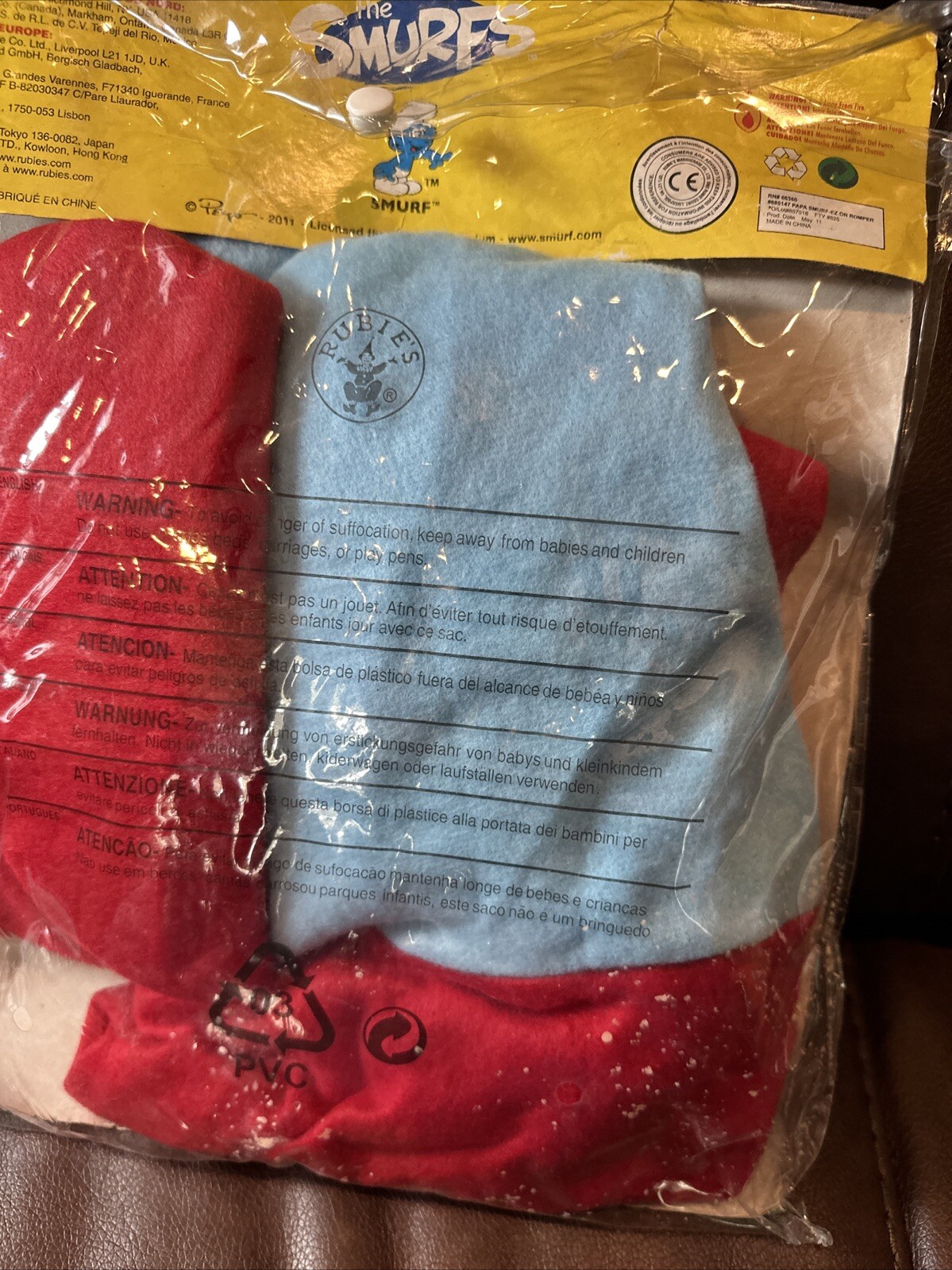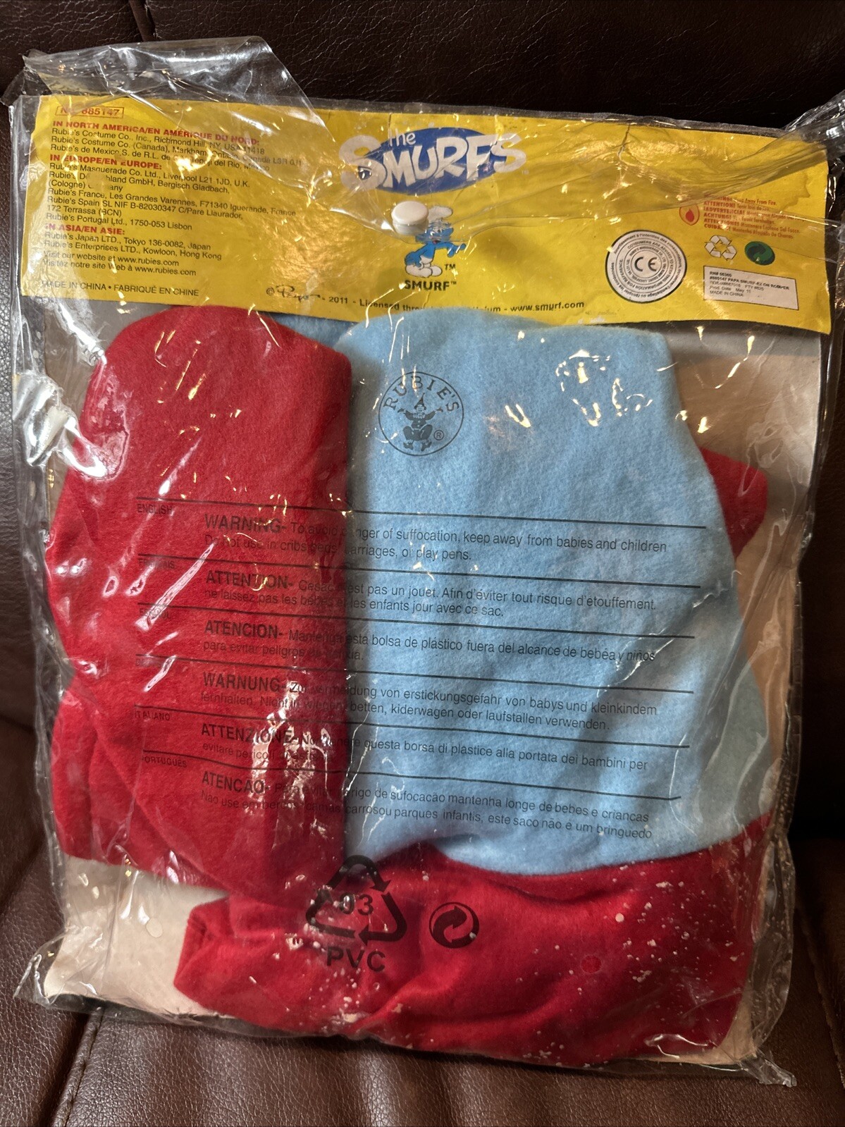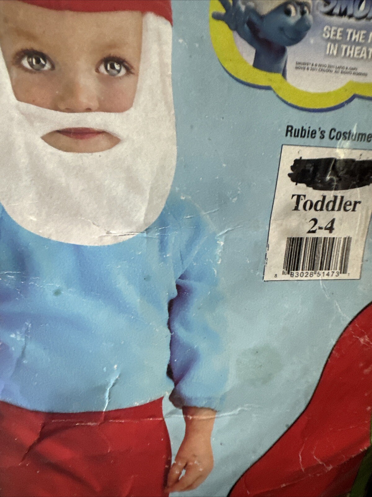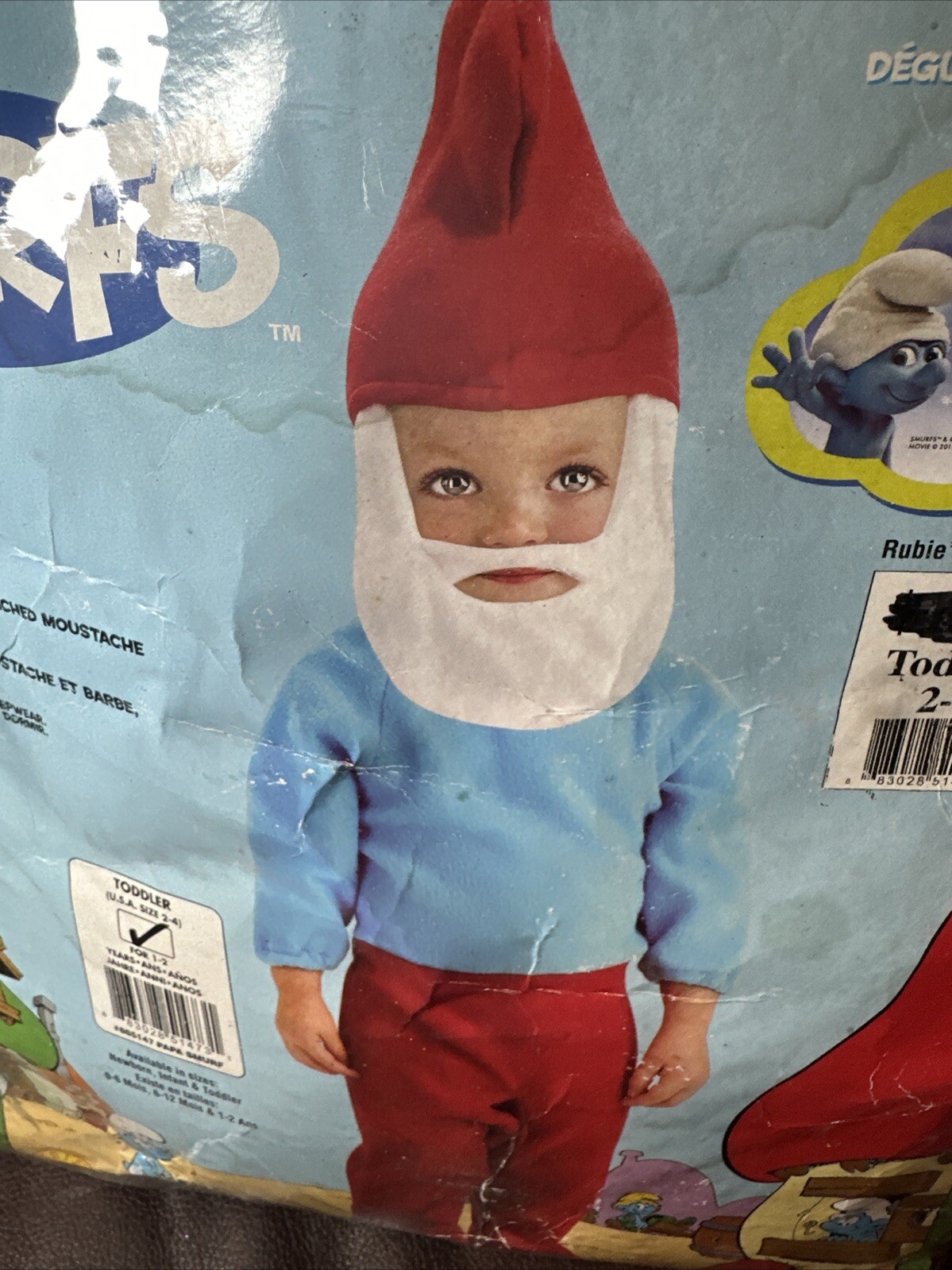 как выглядит THE SMURFS Papa Smurf Easy Romper Hat W/ Mustache Attached Toddler 2-4 Costume фото
