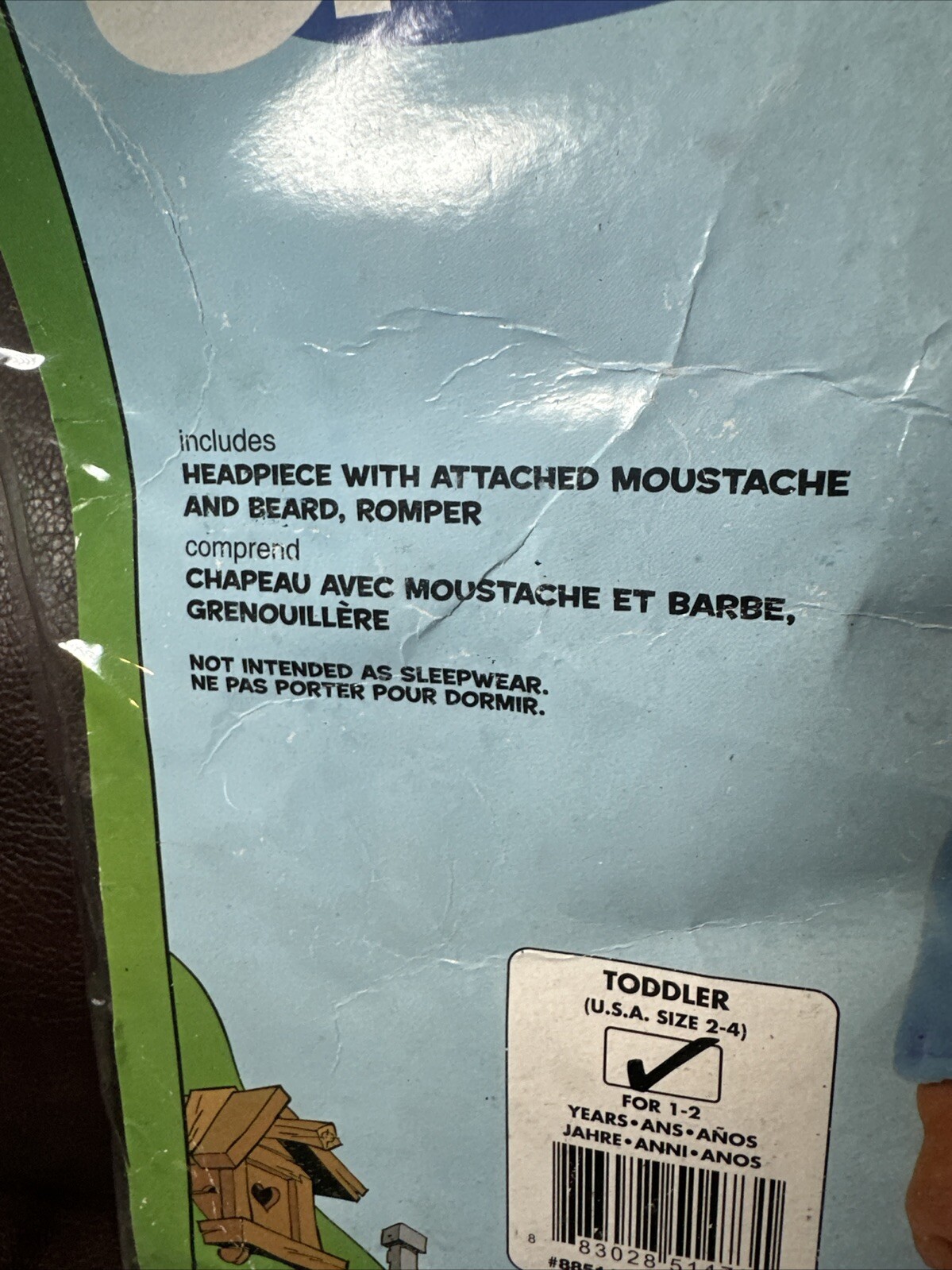 THE SMURFS Papa Smurf Easy Romper Hat W/ Mustache Attached Toddler 2-4 Costume