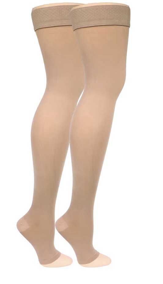 Truform Thigh High Open Toe Opaque Beige Firm Compression 20-30 Stockings