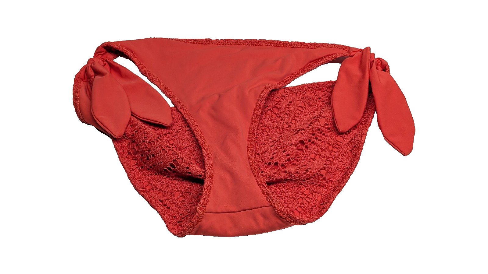 Aerie Red Crochet Tie Side Bikini Bottom Women s Large L Swimwear Boho Beach
