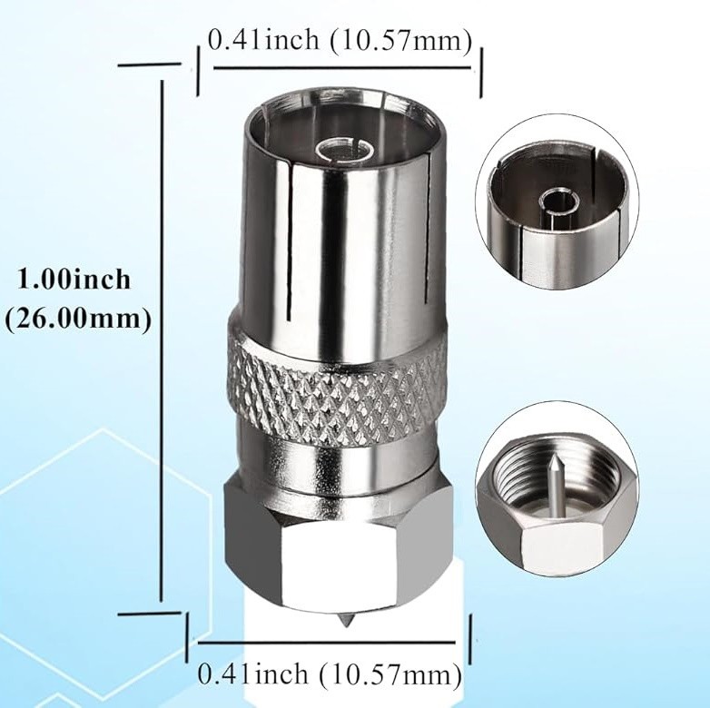 как выглядит TV F Male to PAL DVB-T Female RF Antenna CATV FM/Radio Coaxial Adapter/Connector фото
