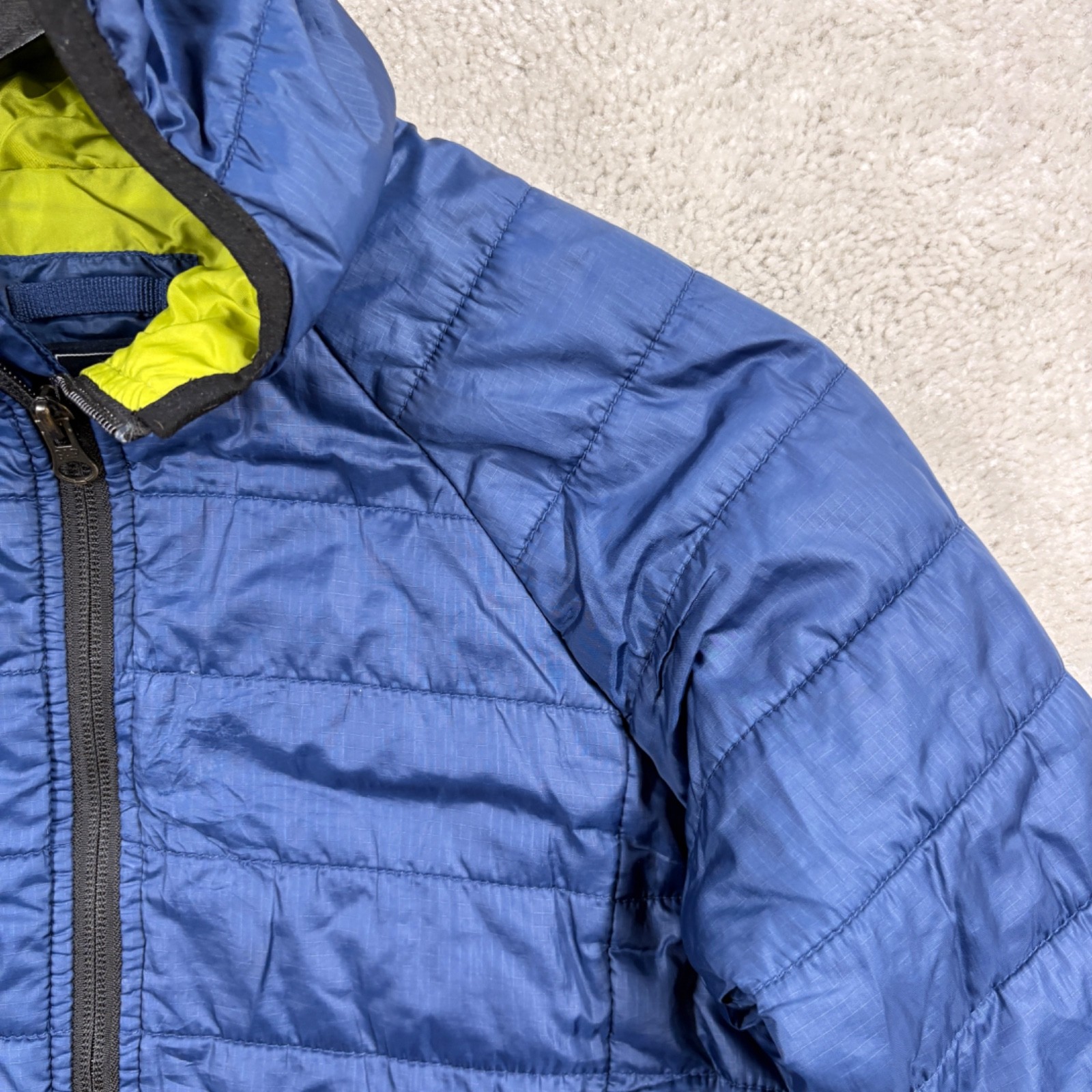 как выглядит Gap Kids Puffer Jacket Kids Size Small Blue Full Zip Pockets Quilted Primaloft фото