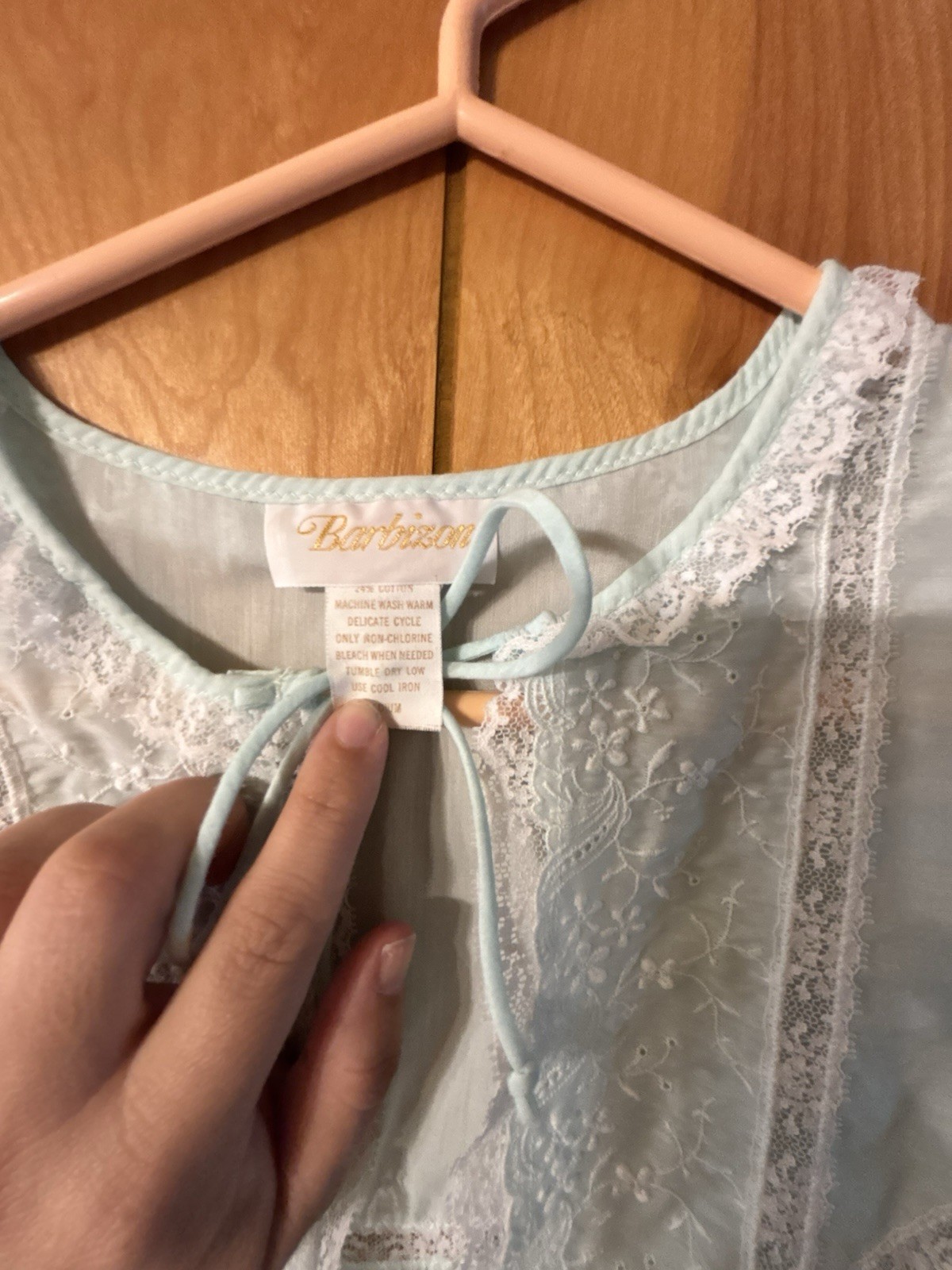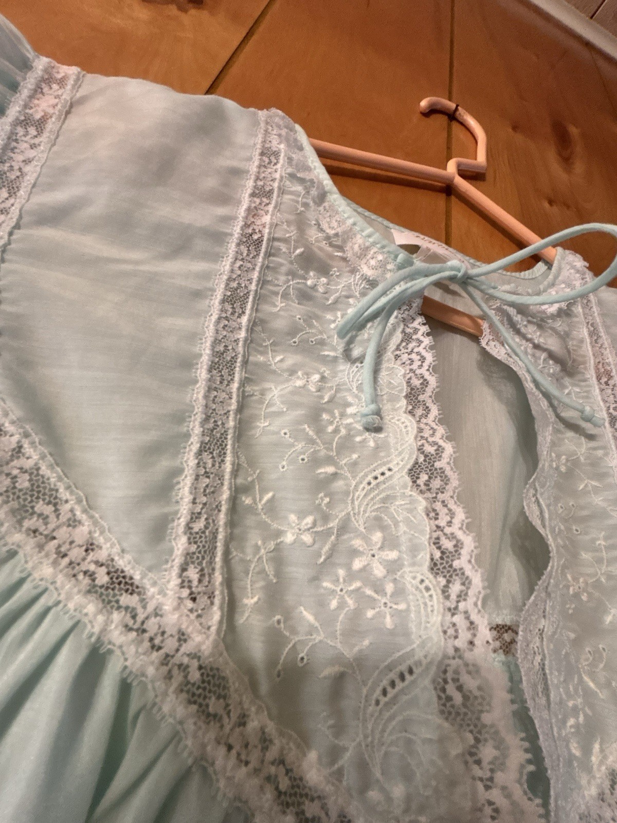 как выглядит Vtg Barbizon Long Nightgown Sz M Blue Embroidery Lace Details фото