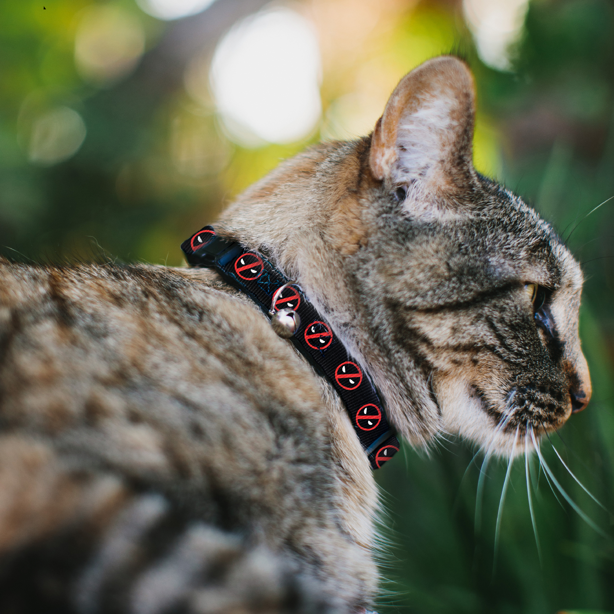 Cat Collar Breakaway with Bell Deadpool Logo2 Black/Red/White NARROW Fits 8.5-12