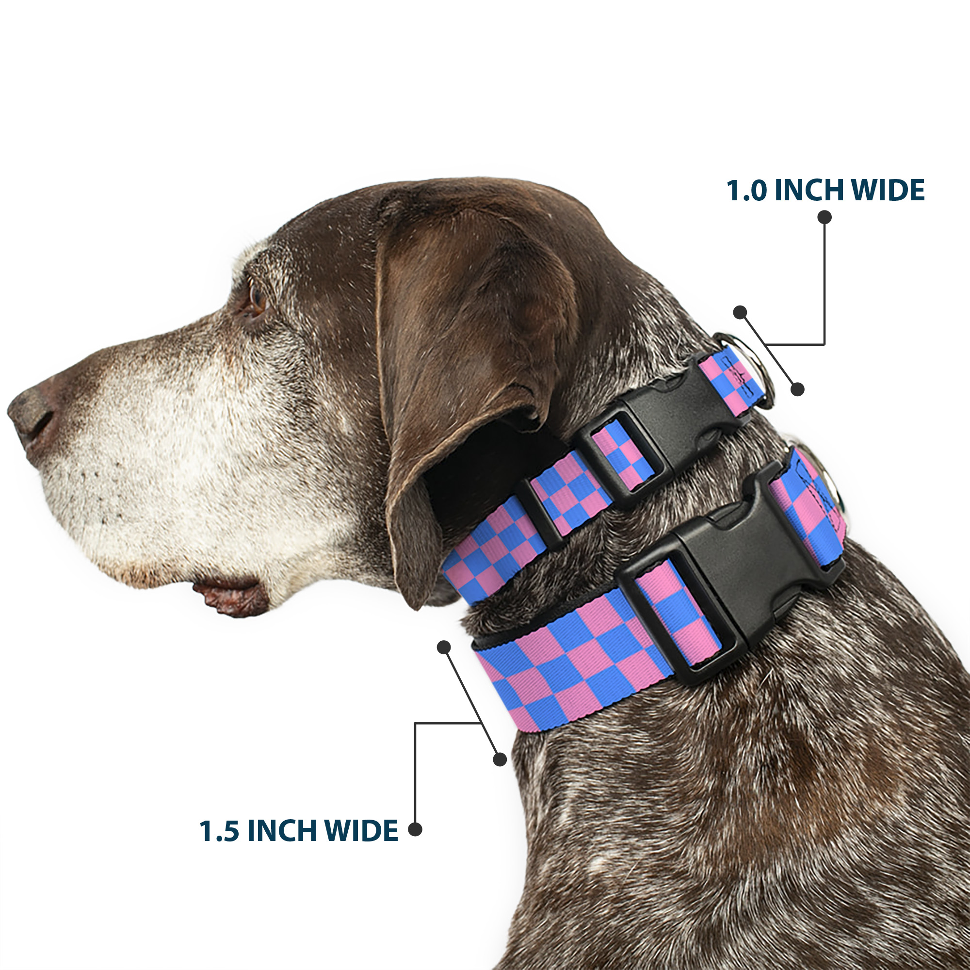 Title: Plastic Clip Collar Checker Baby Pink/Baby Blue WIDE-Large 20-31"