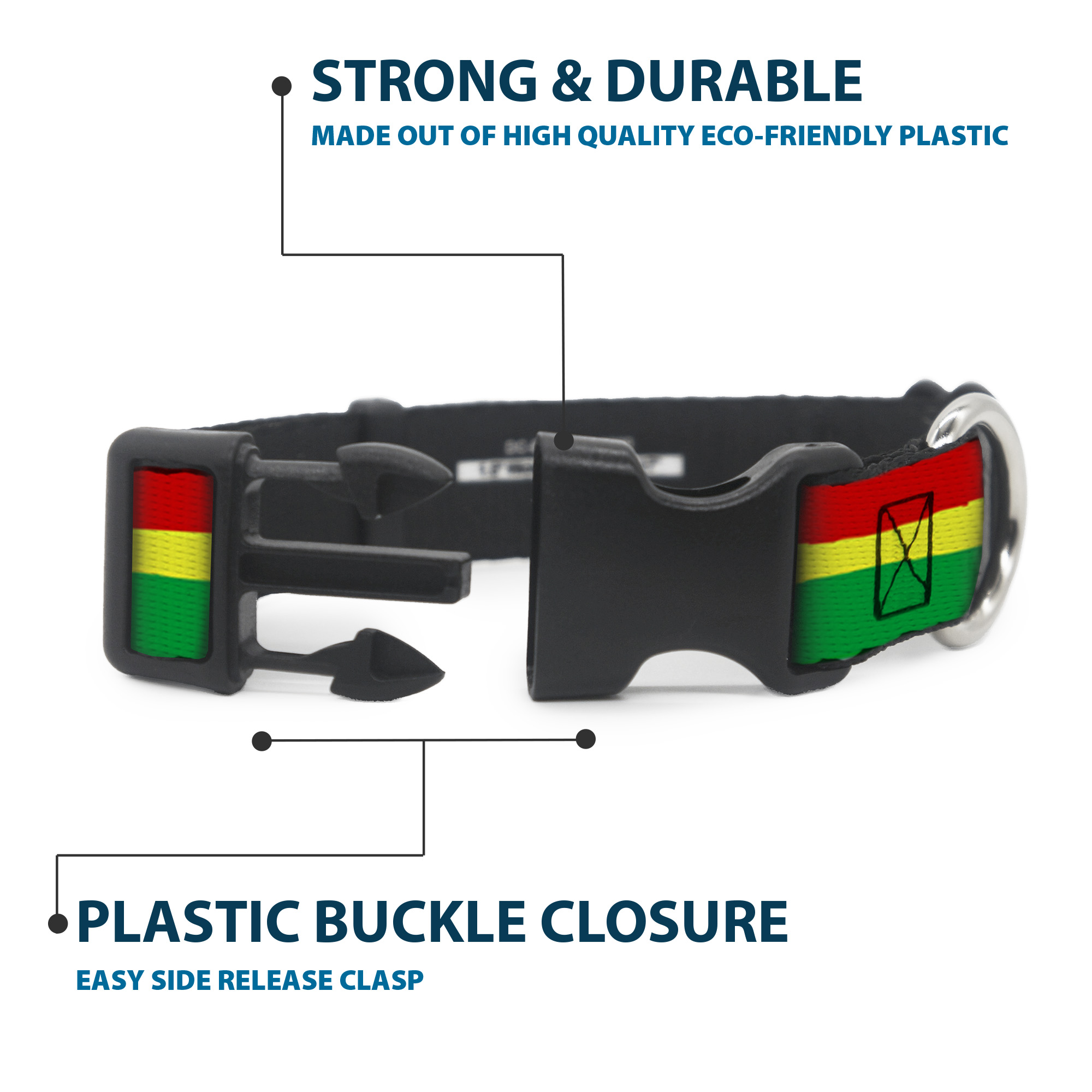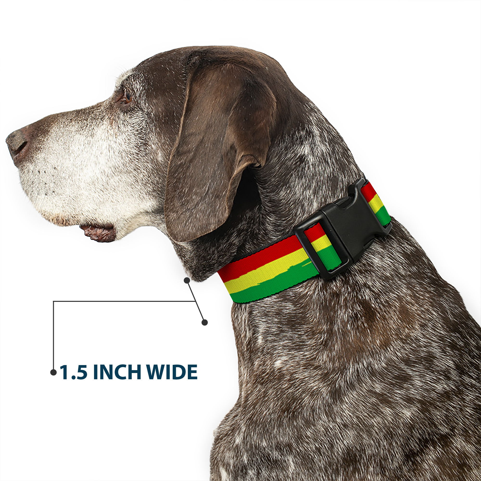 Plastic Clip Collar Rasta Stripes Painted Green/Yellow/Red WIDE-Large 20-31