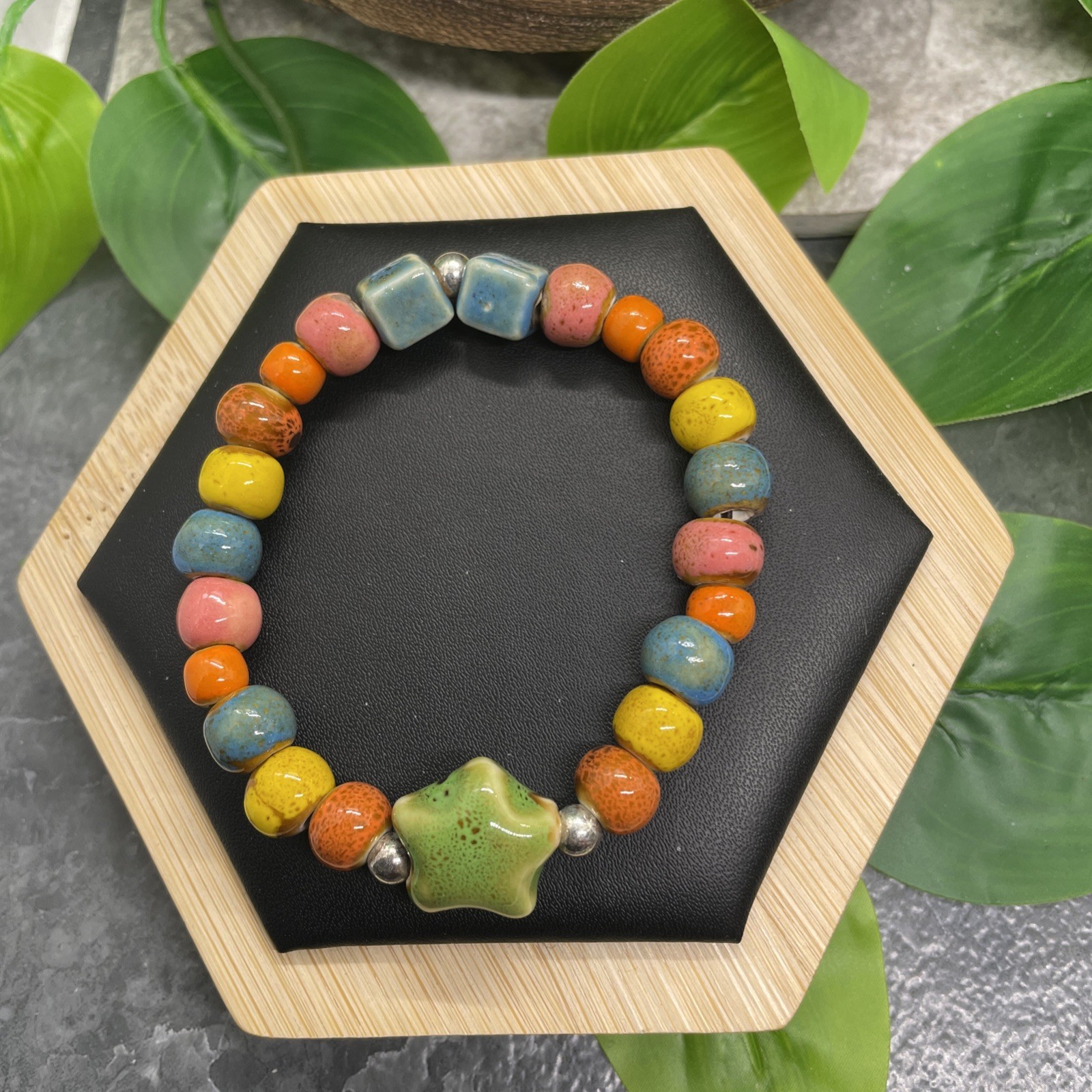 Handmade Ceramic Bead Beaded Stackable 6.5 Plus Stretch Bracelet New B8990