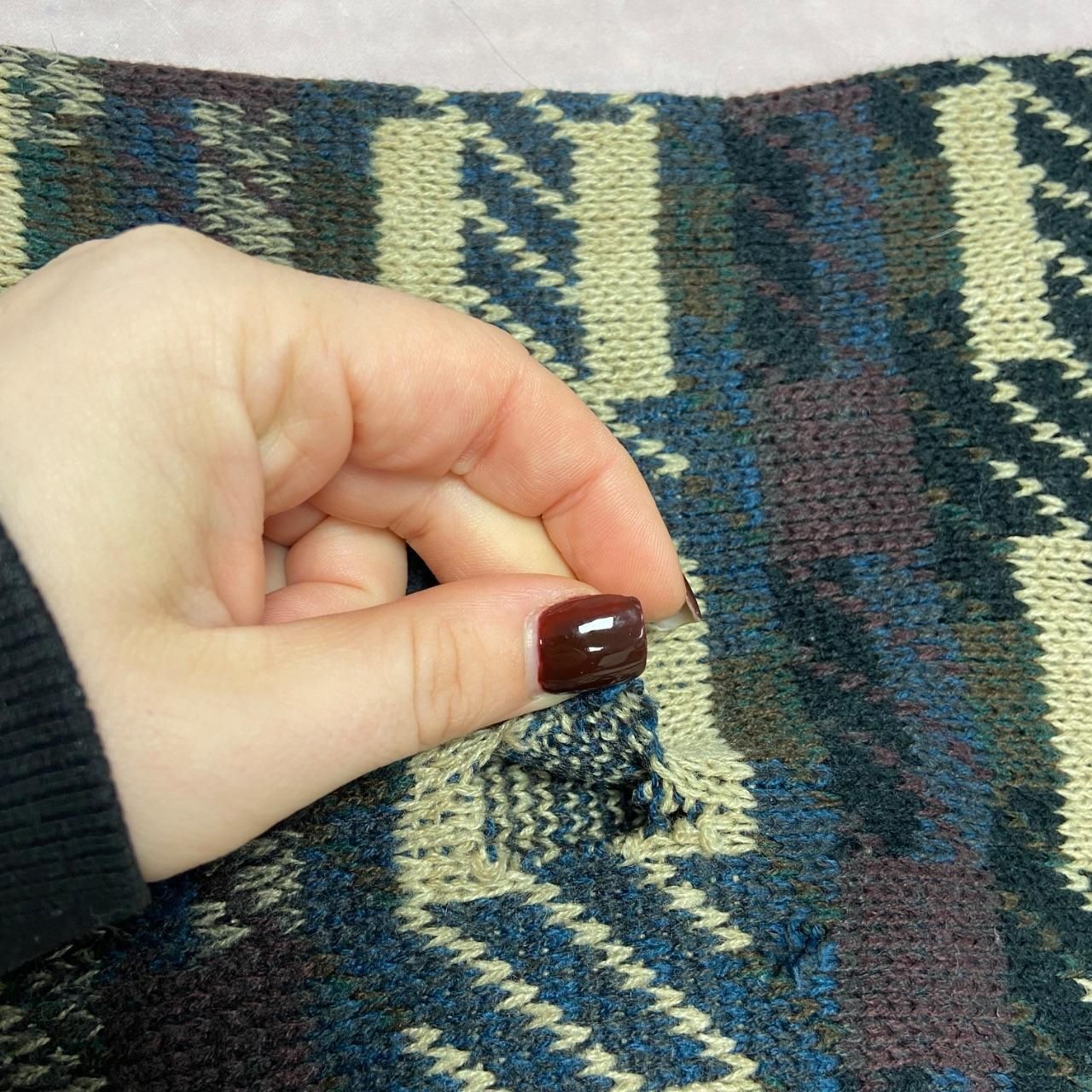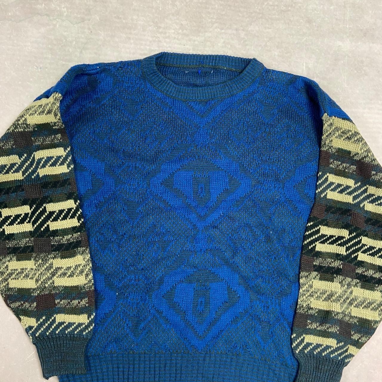 как выглядит Vintage Knitted Jumper Abstract Patterned Grandad Knit Sweater Men