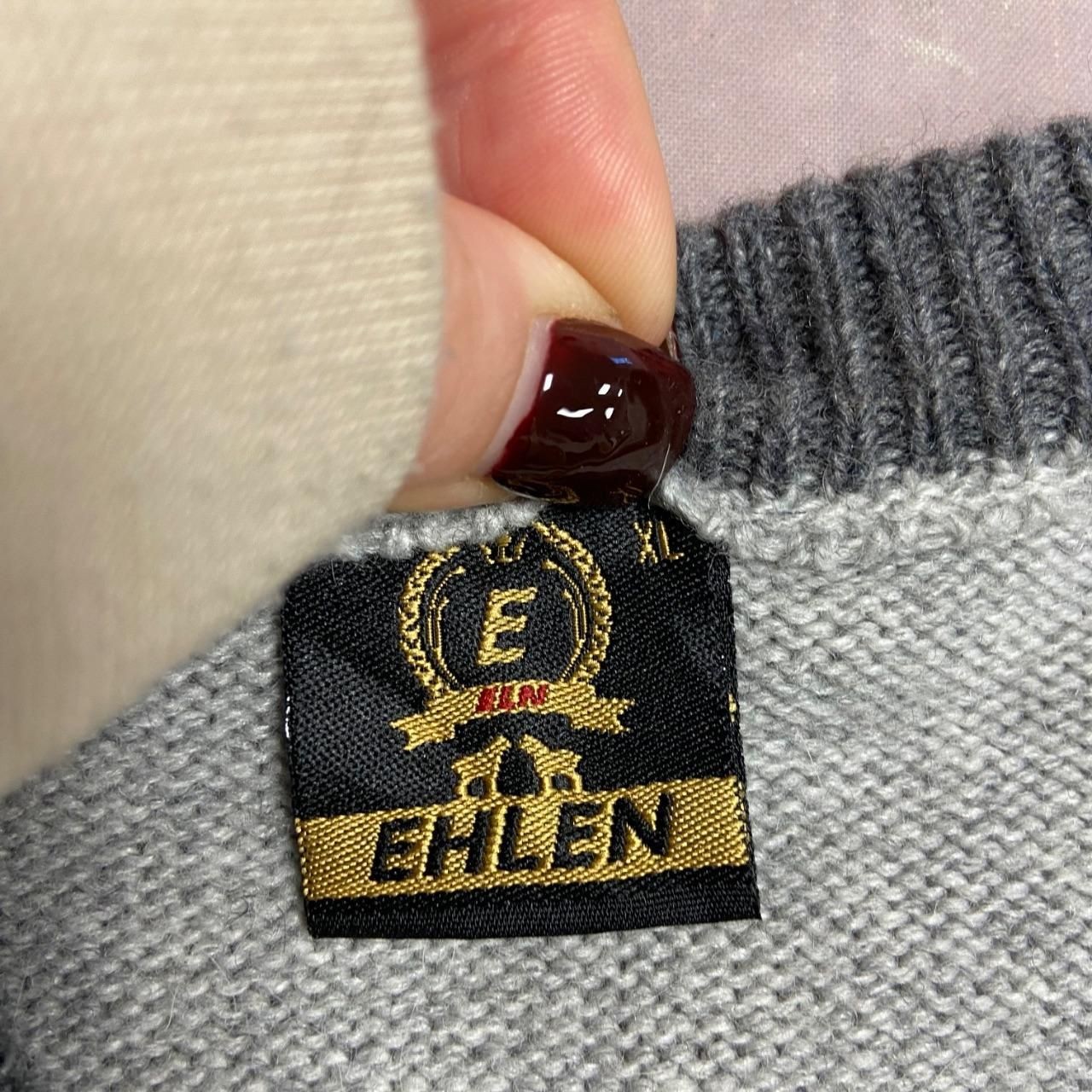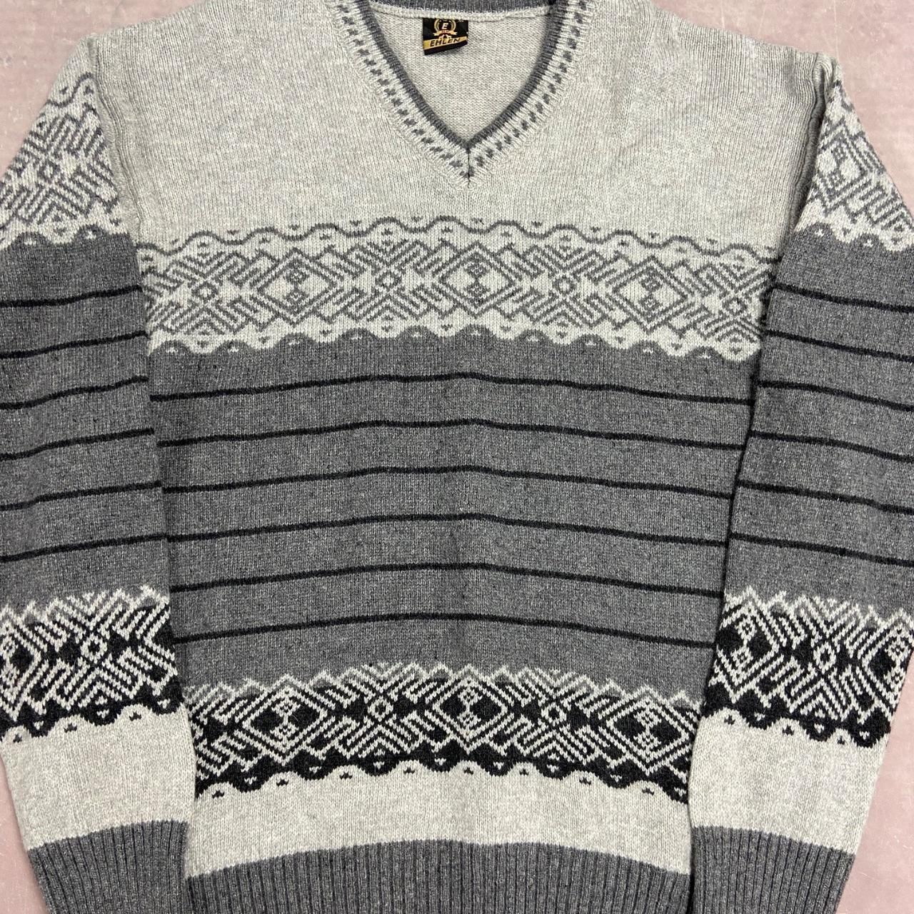 как выглядит Vintage Knitted Jumper Abstract Patterned V-Neck Grandad Knit Sweater Men
