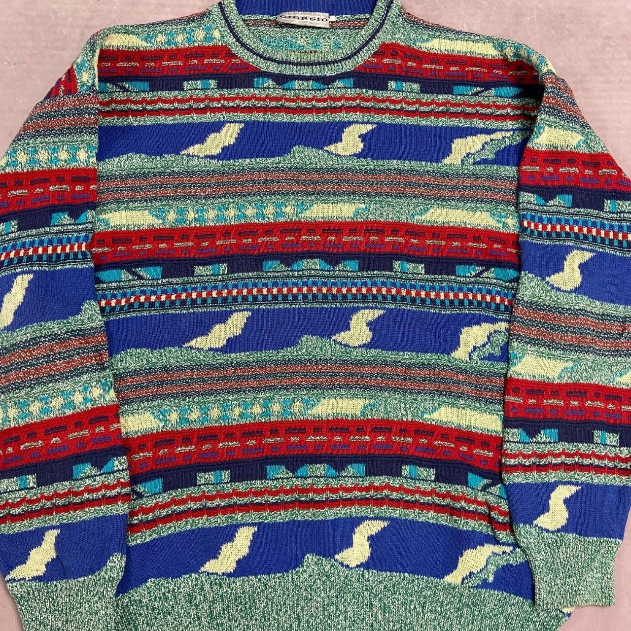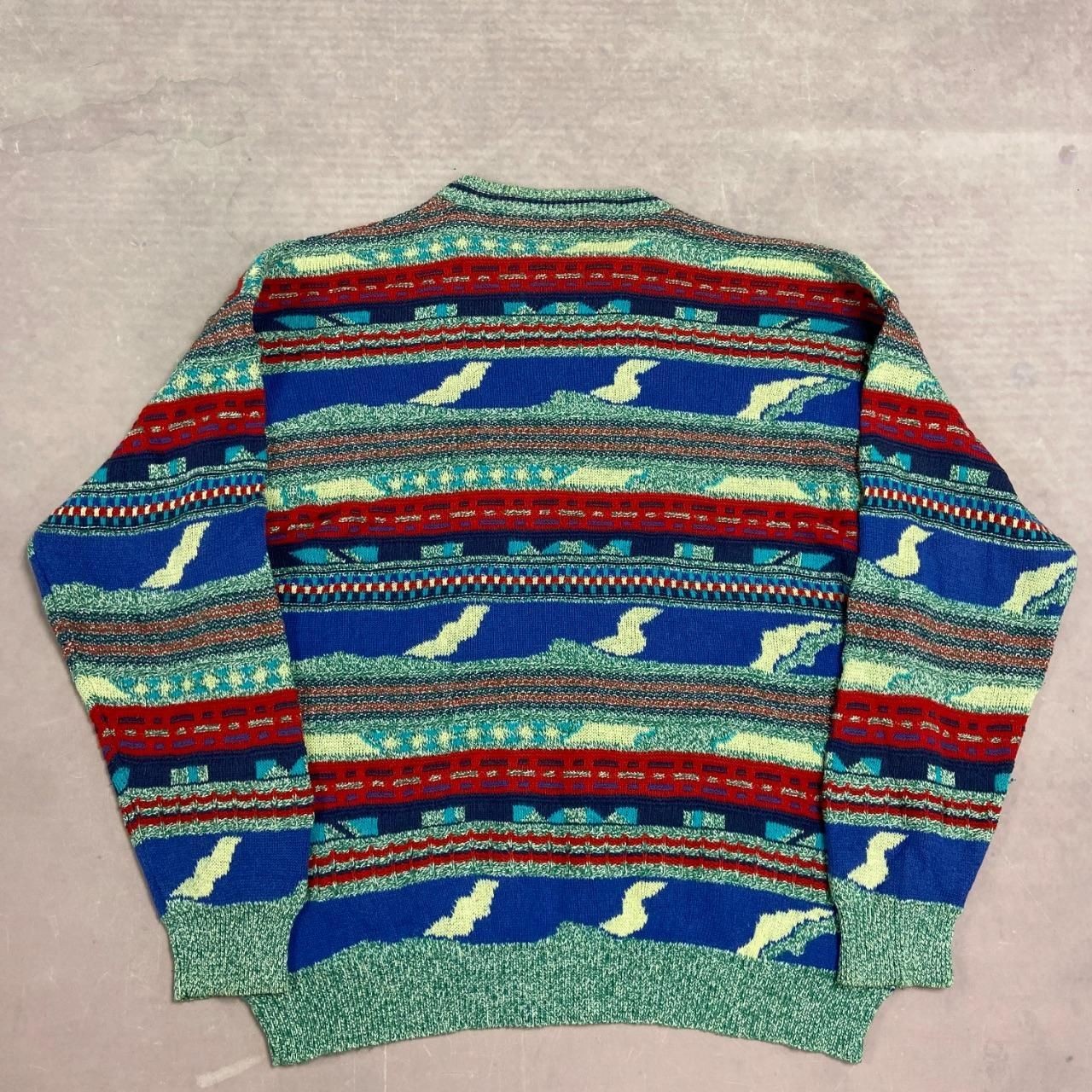как выглядит Vintage Knitted Jumper Abstract Patterned Grandad Knit Sweater Mens L фото