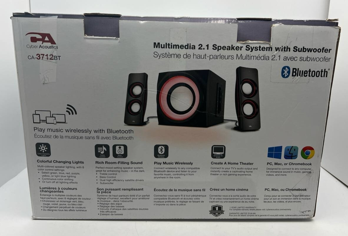 Cyber Acoustics Peak Power Bluetooth Speakers Subwoofer LED Lights 32W CA-3712BT