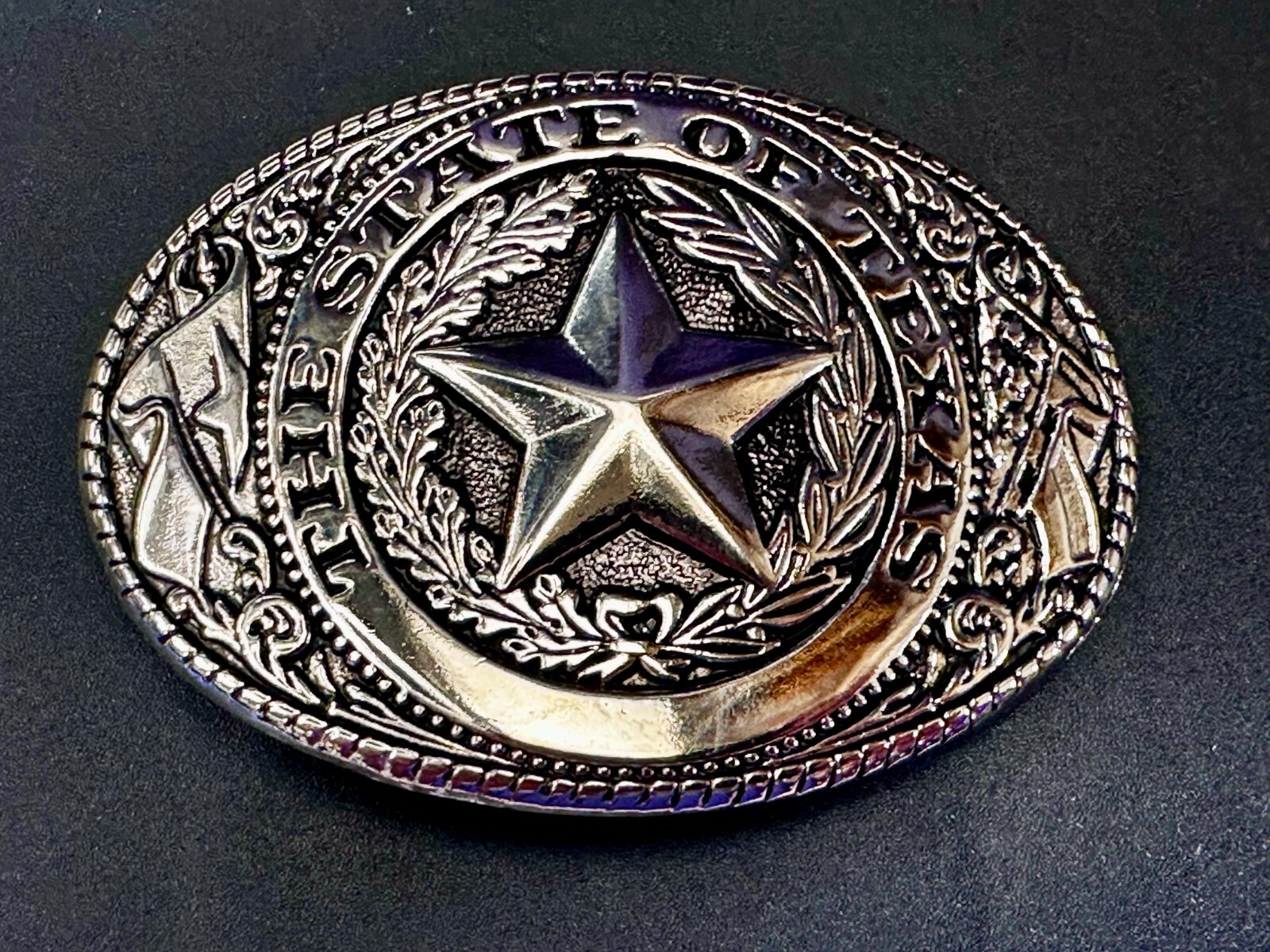 как выглядит The Great States of Texas Lone Star Silver Color Reflective Vintage Belt Buckle фото