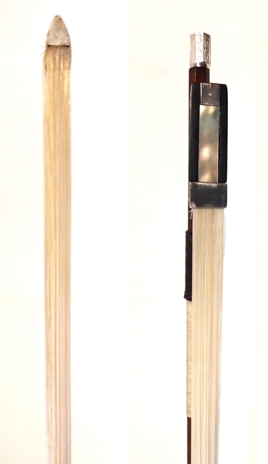 как выглядит VTG Snakewood 4/4 Violin Bow, Silver-Lined Ebony, Engraved Inlays, .999 Lapping фото