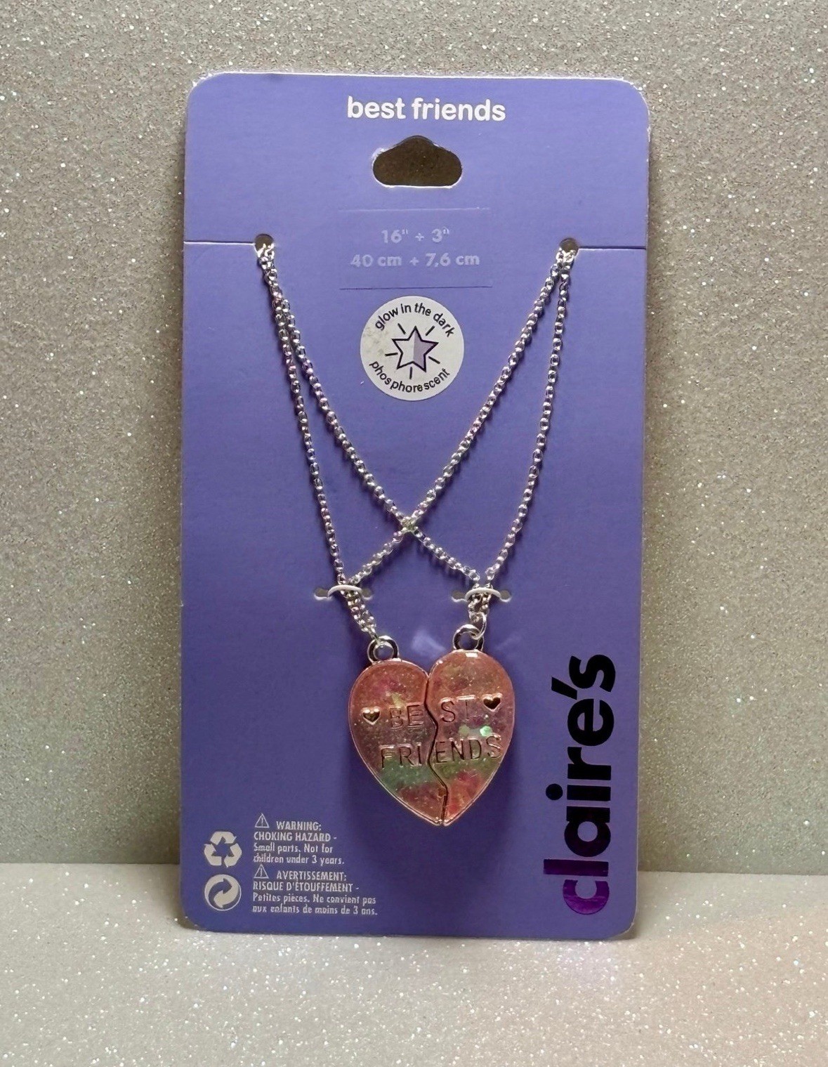 Claire s Best Friends Pastel Ombr Split HeartPendant Necklaces - 2 Pack new