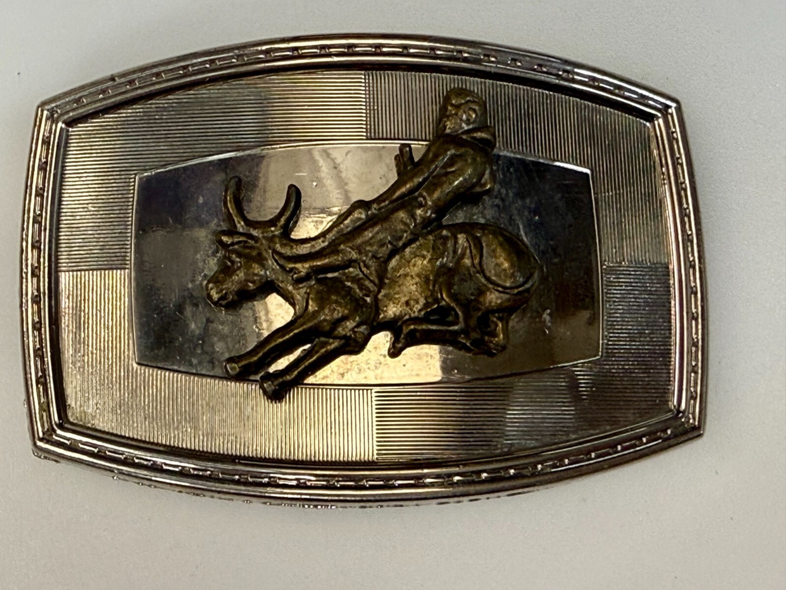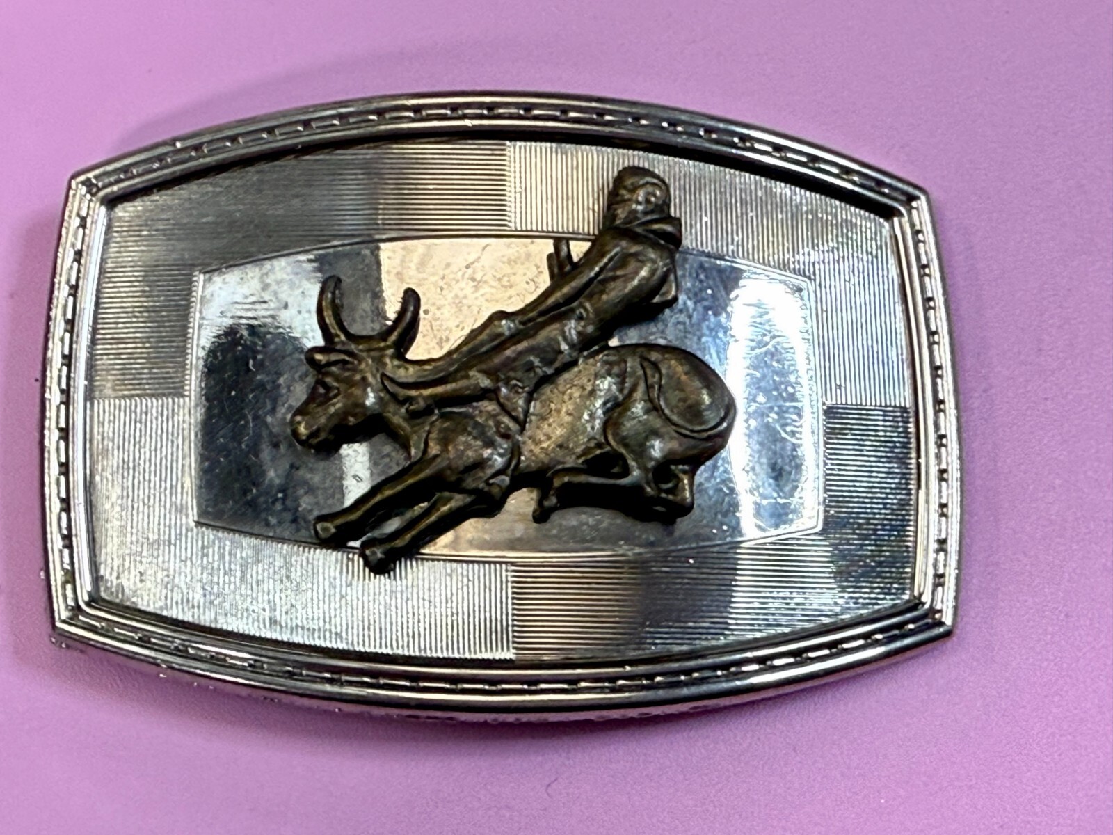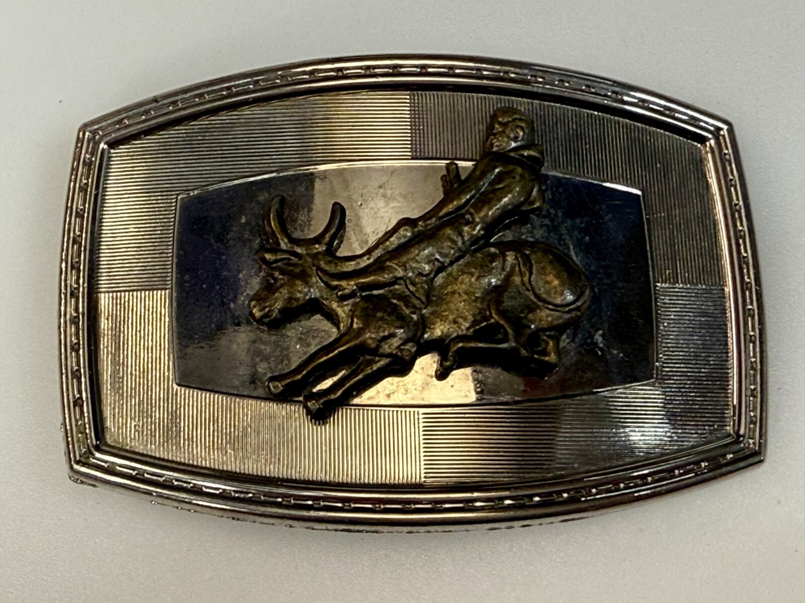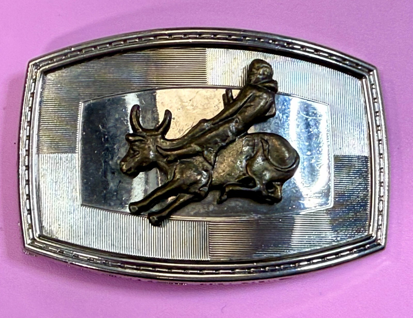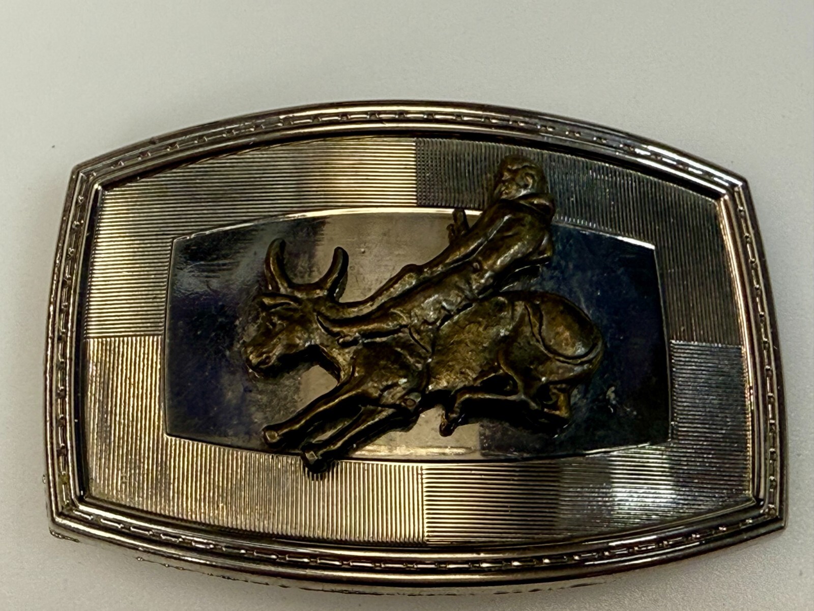 • Rodeo Cowboy on Bucking Saddle Bronc Two Tone Western Vintage Belt Buckle
