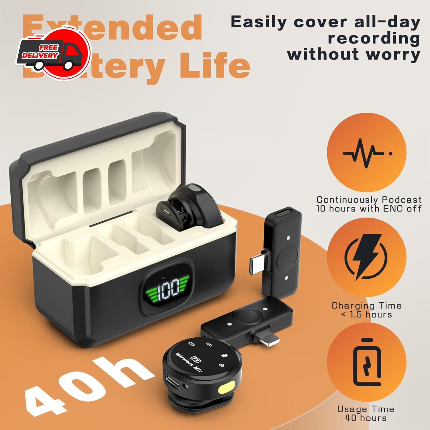 Wireless Lavalier Mic for iPhone/Android/PC - USB-C/Lightning, Noise Reduction