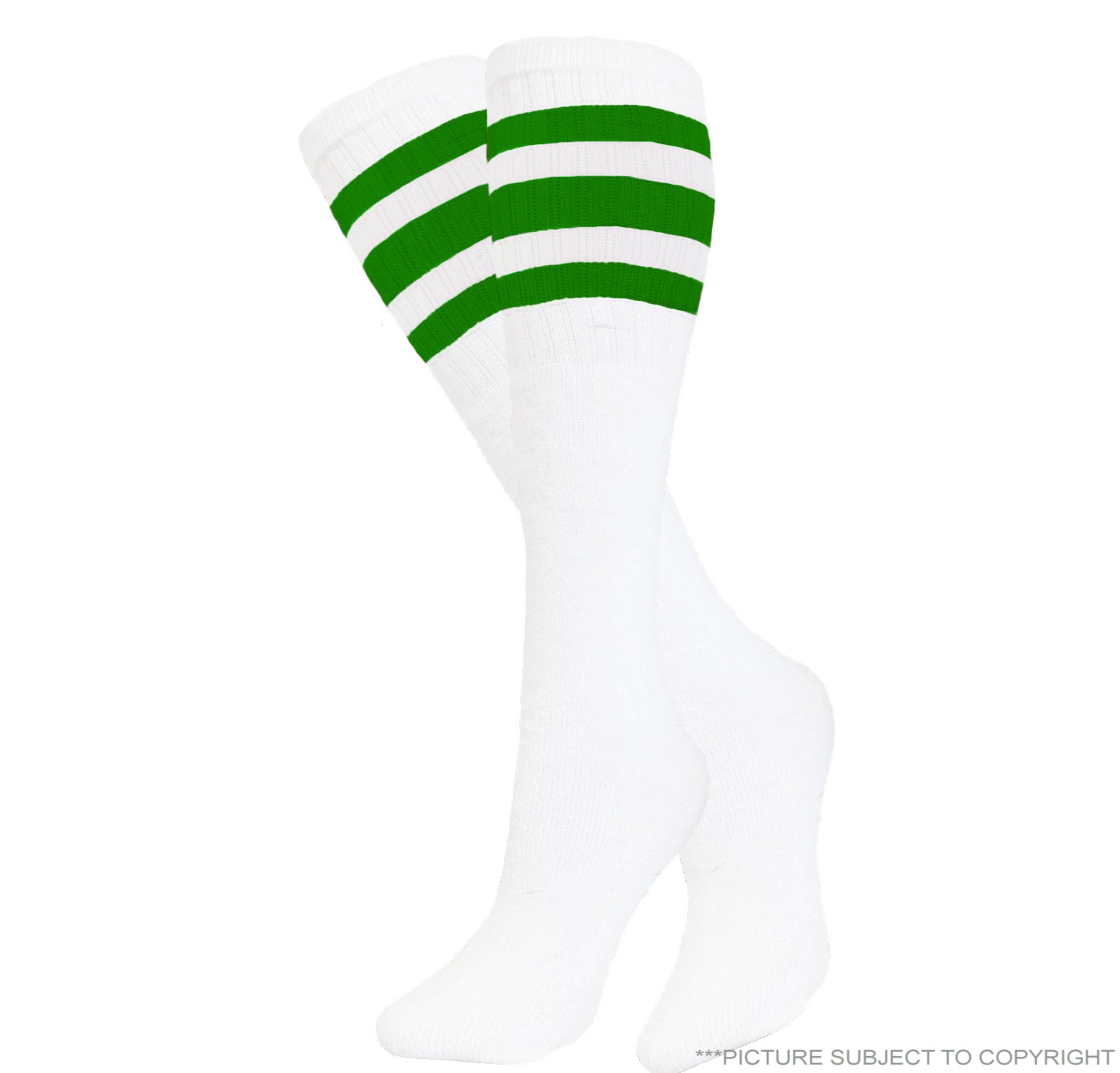 4 PAIRS TUBE SOCKS WHITE WITH GREEN Stripes LONG OLD SCHOOL SOCKS 10-15