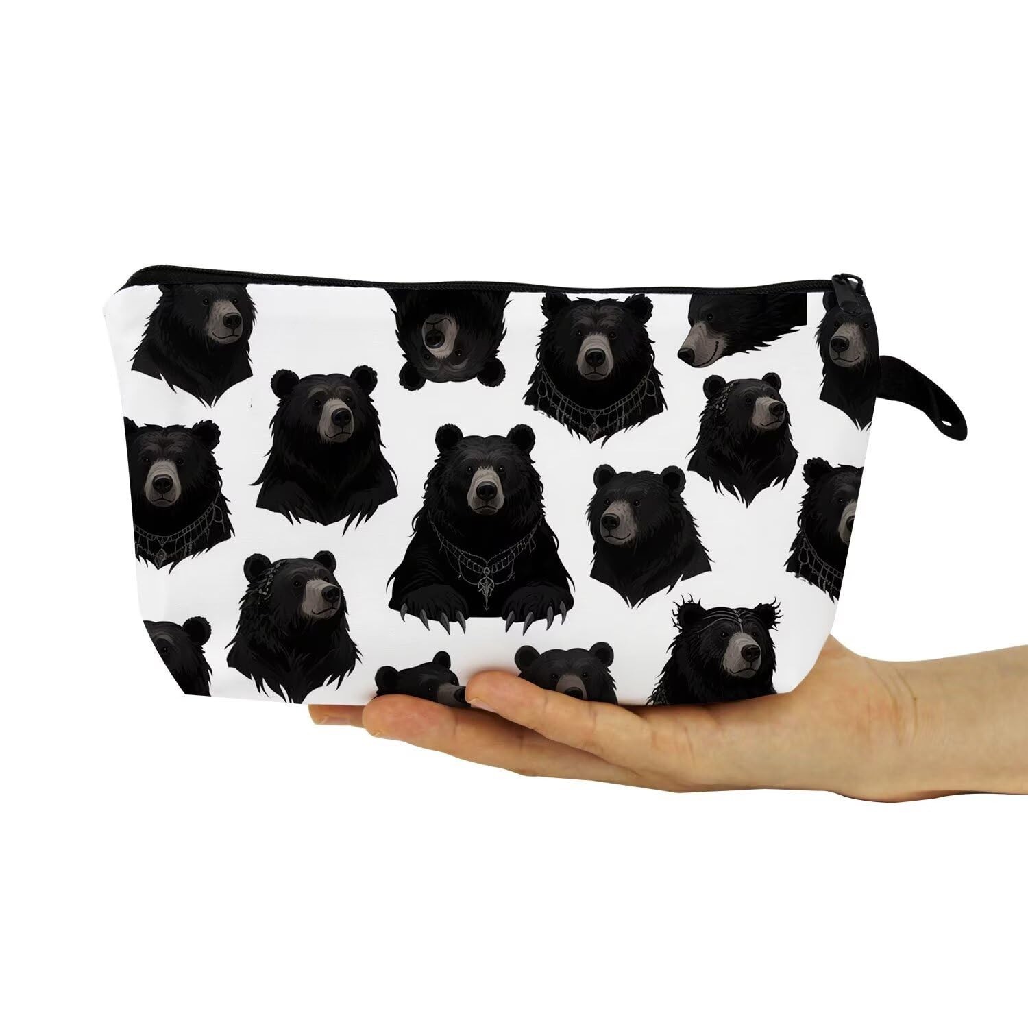 Black Bear Makeup Bag Cute Small Organizer Bag with Zipper Gothic Black Bear ...