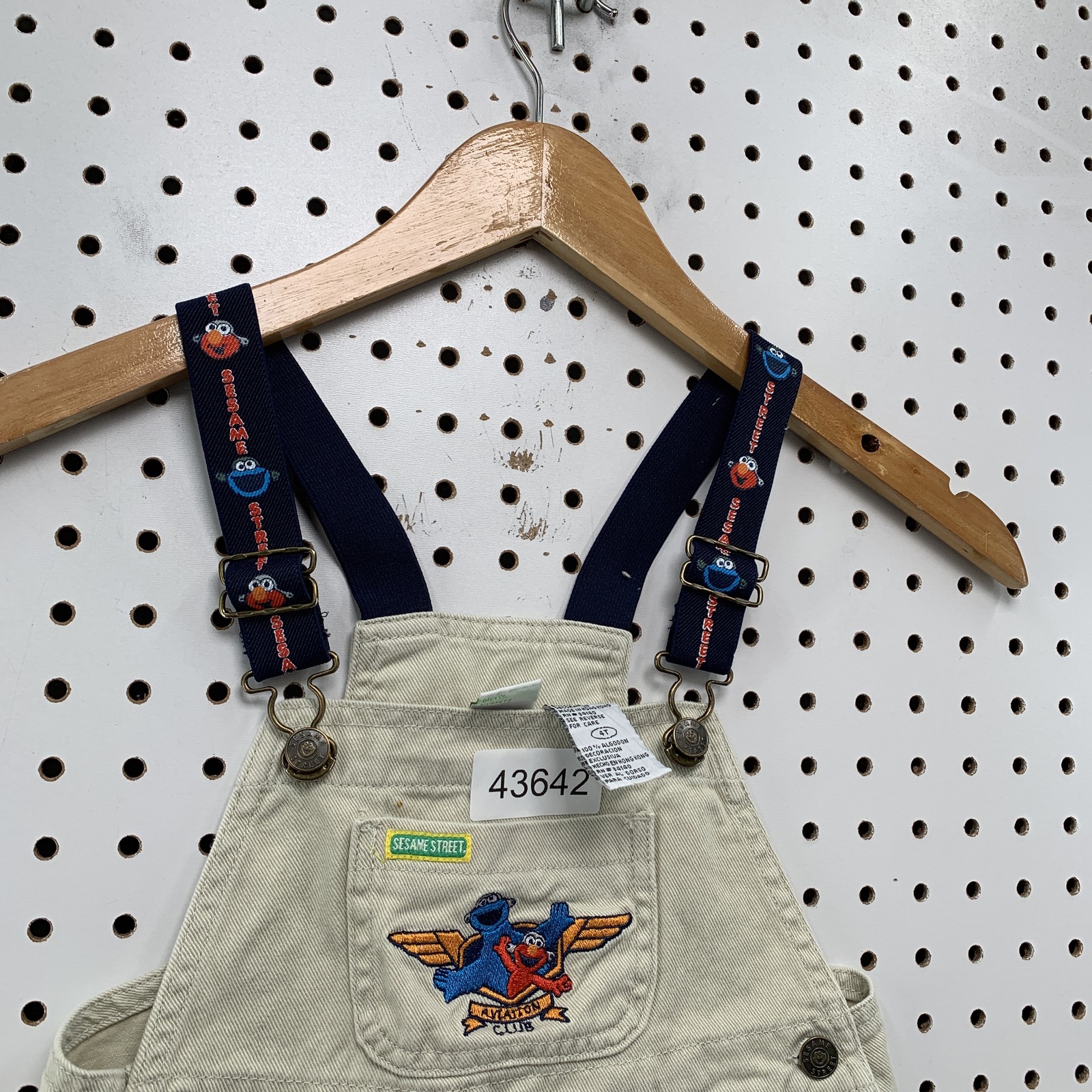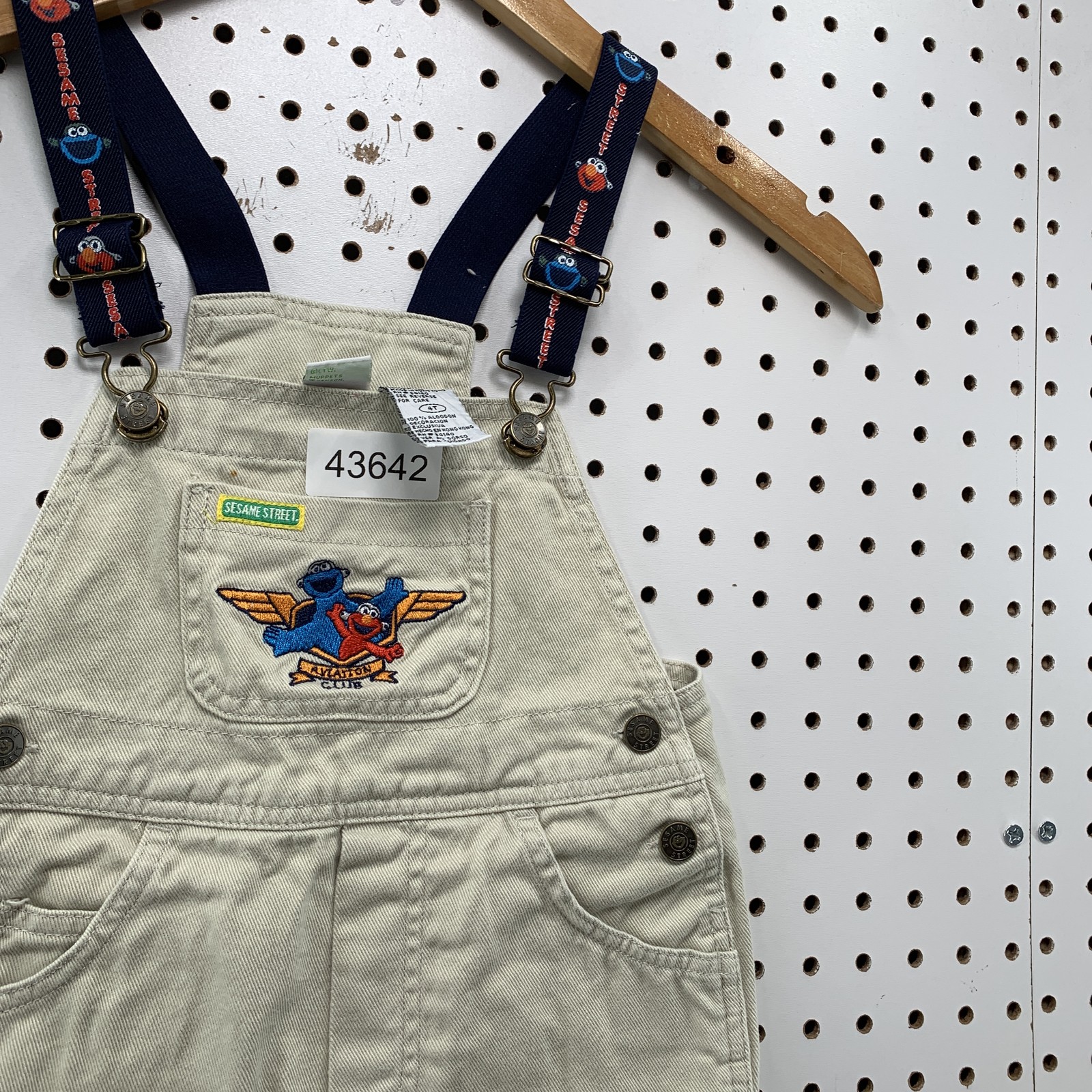 Vintage Sesame Street Elmo Cookie Monster Overalls 4T Kids Khaki Embroidered
