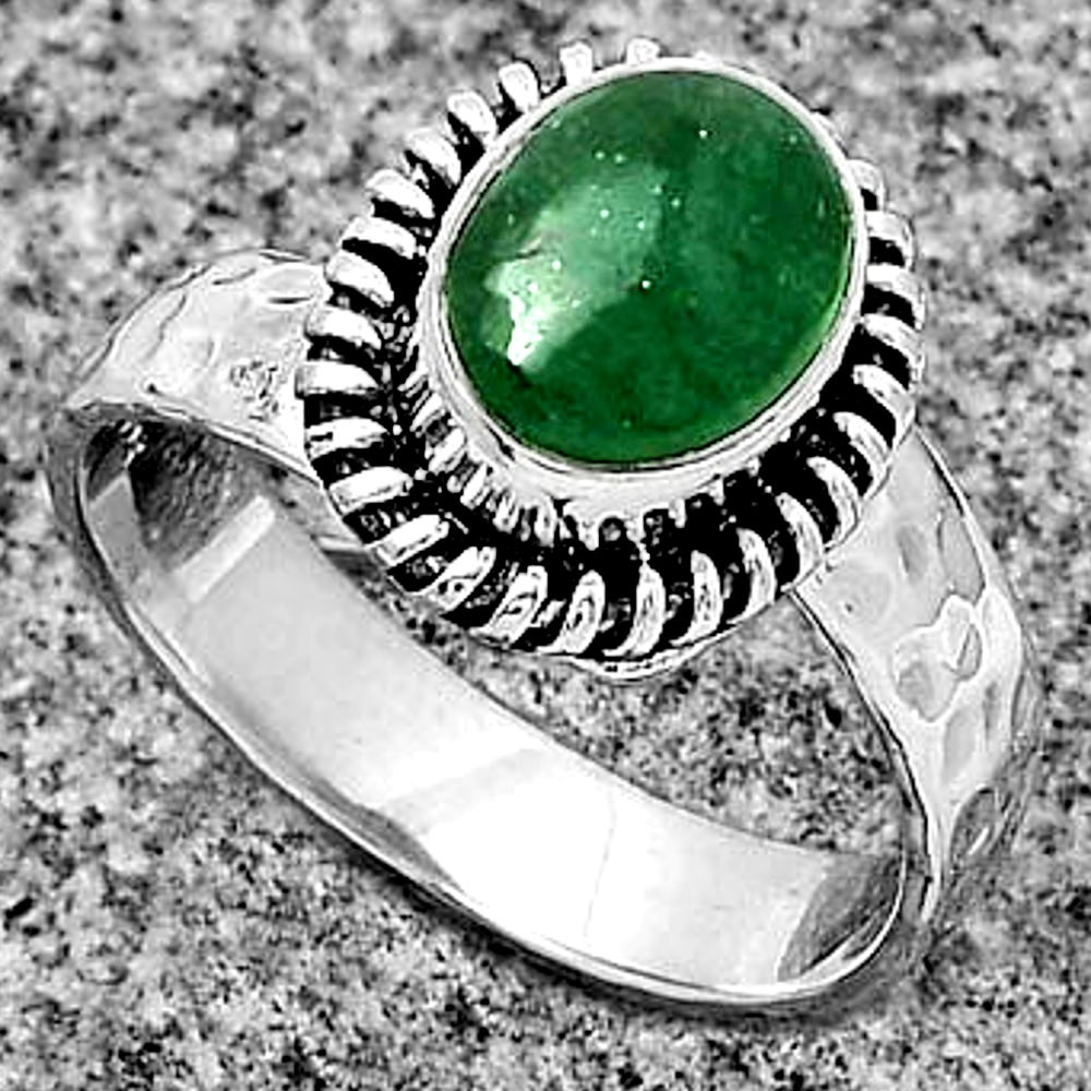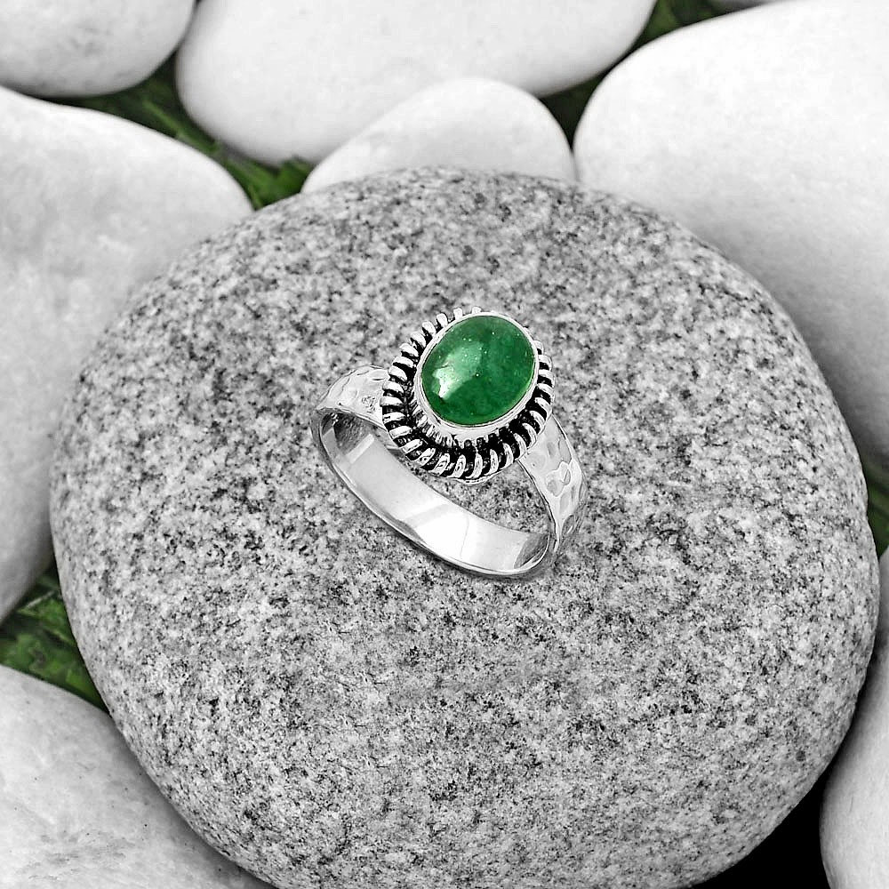 Natural Green Aventurine 925 Sterling Silver Ring s.8 Jewelry R-1279