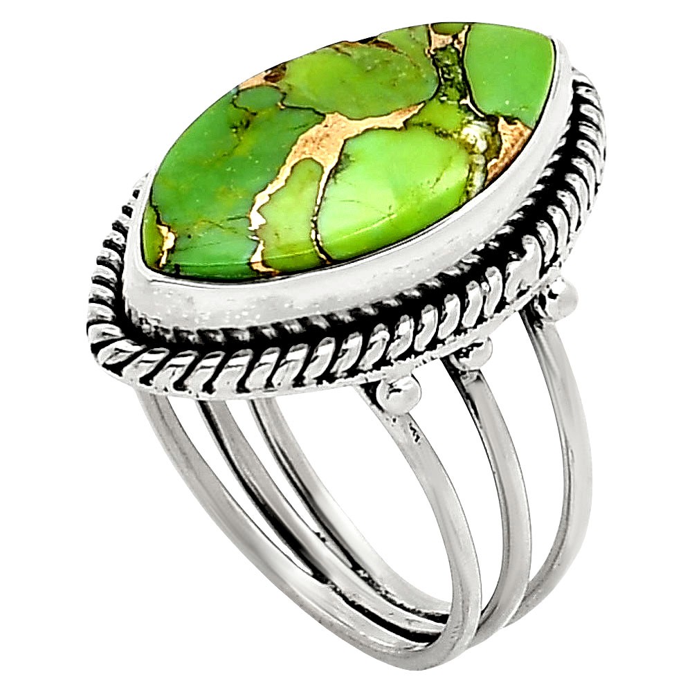 как выглядит Blue Turquoise In Green Mohave - USA 925 Sterling Silver Ring s.7 Jewelry R-1010 фото