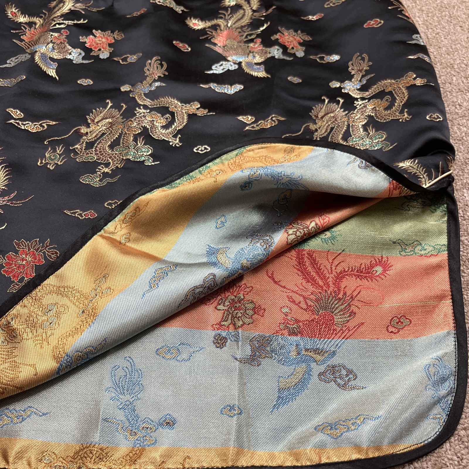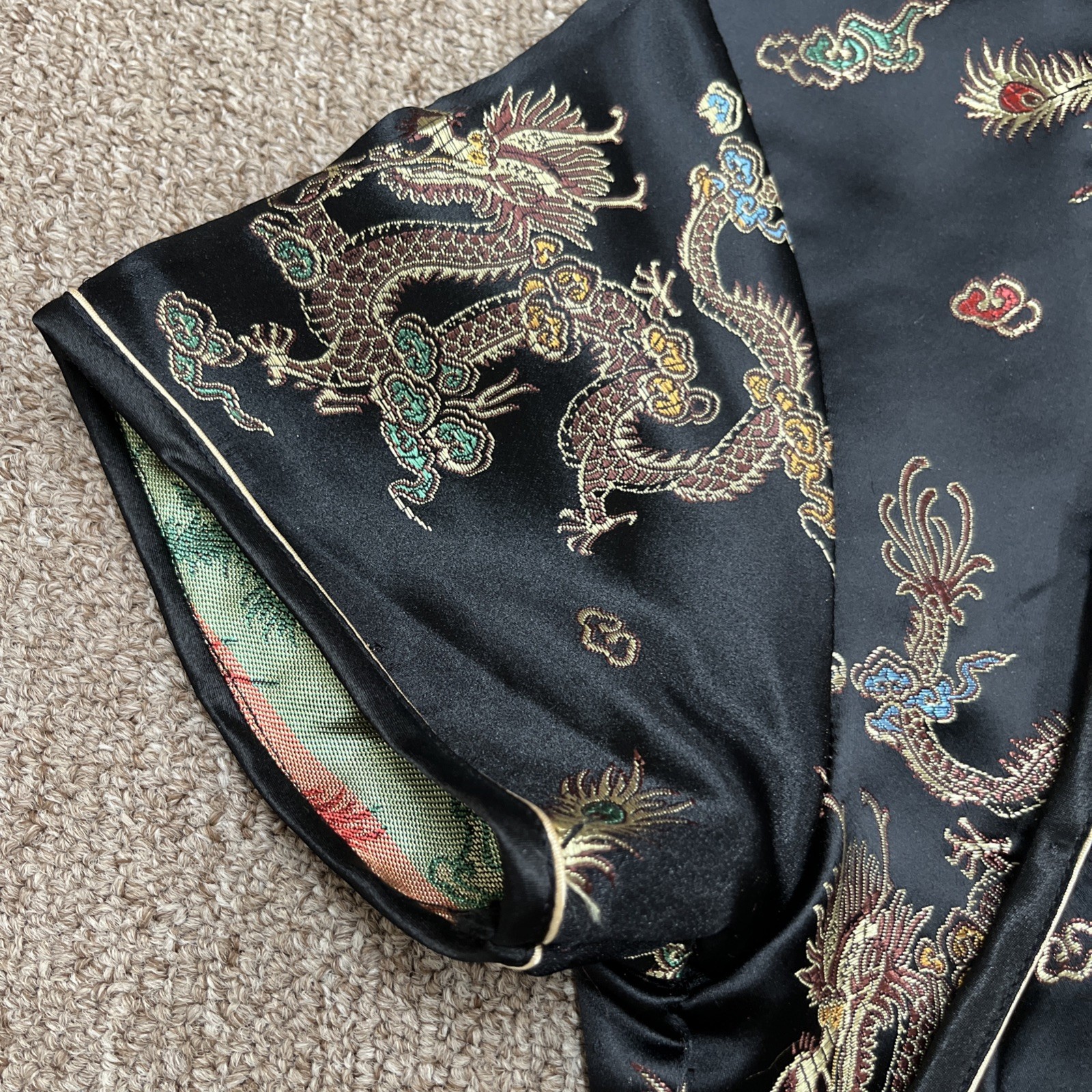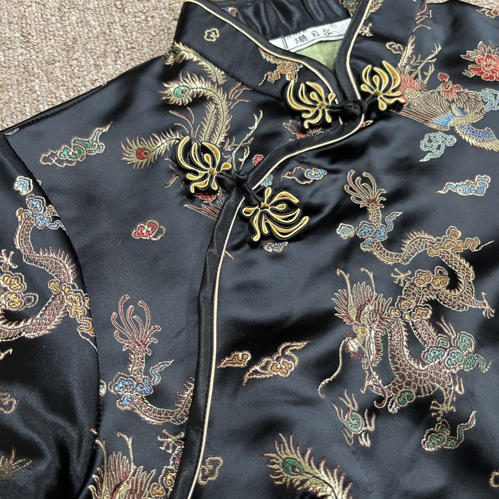 как выглядит Vintage Y2K SMK Satin Cheongsam Traditional Chinese Dress No Sz Tag Black Gold фото