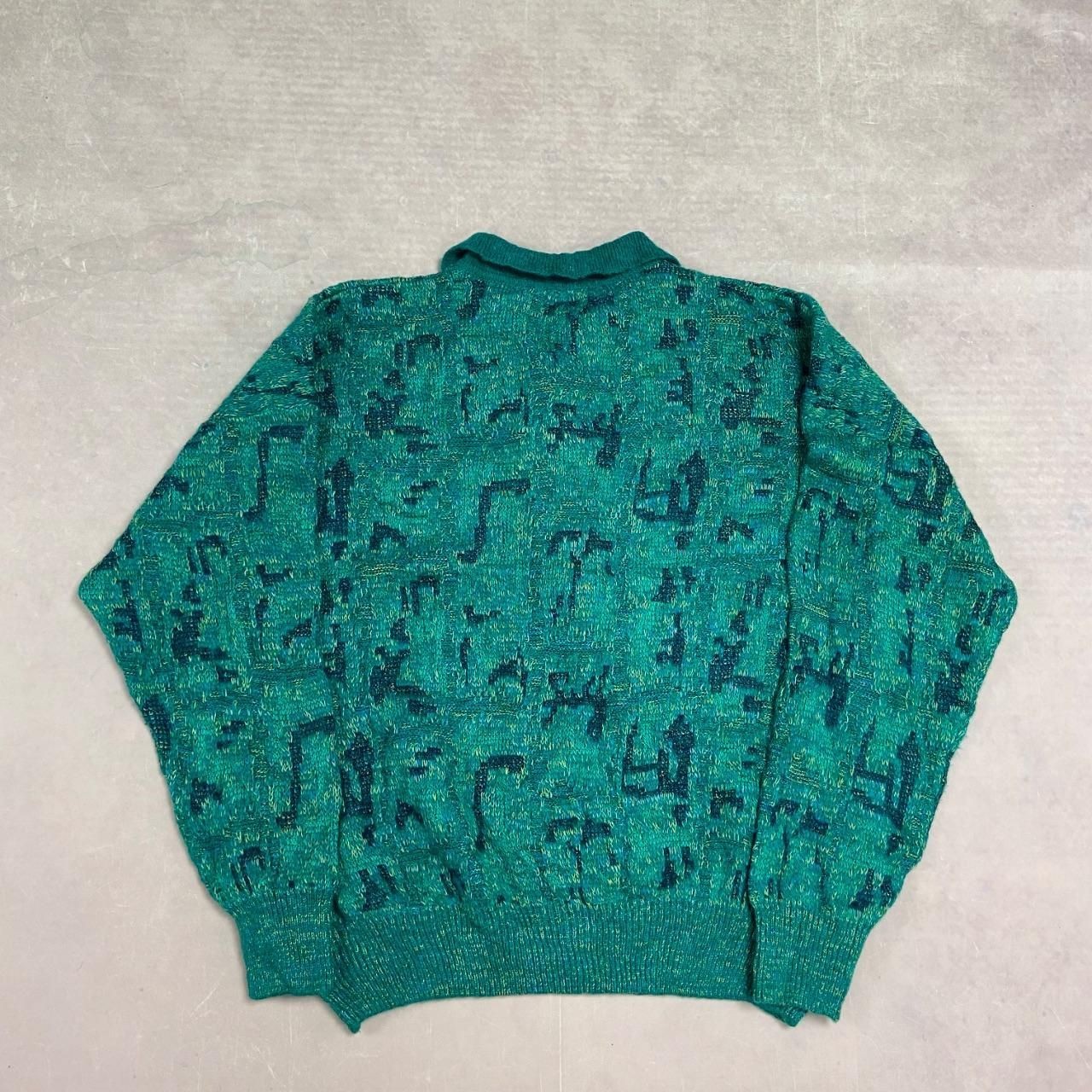 как выглядит Vintage Knitted Jumper Abstract Patterned 1/4 Button Grandad Knit Sweater Mens фото