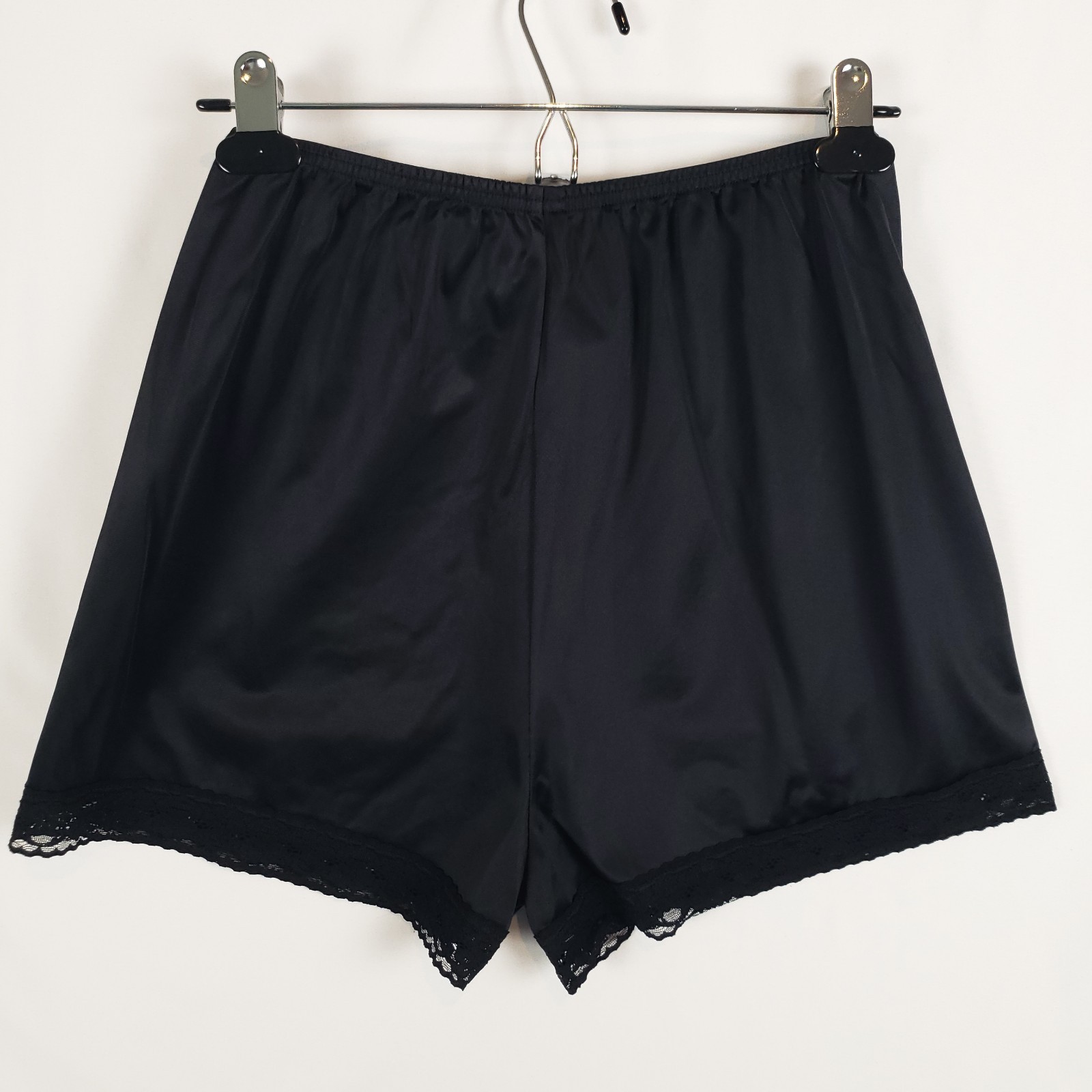 как выглядит Vanity Fair Nylon Pettipants Womens Medium 14" Bloomer Lace Trim Hi-Rise Black фото