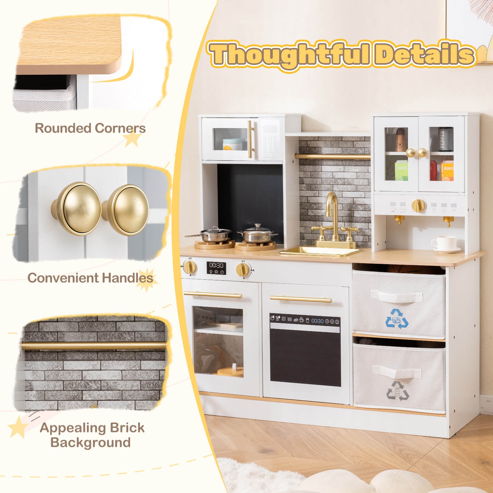 Set Includes: 1 x Kids Play Kitchen, 2 x Fabric Drawers, 1 x Instruction