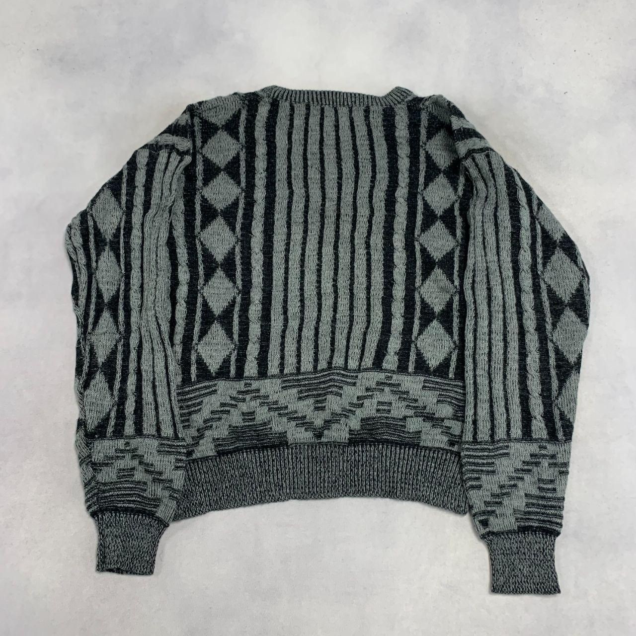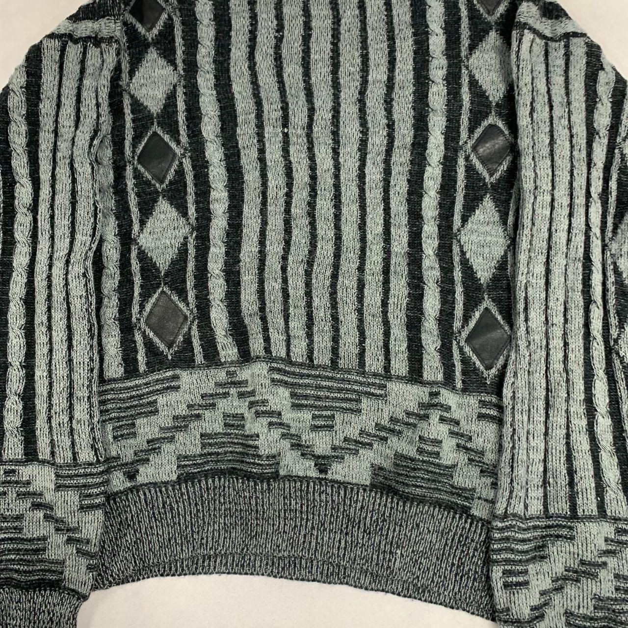 как выглядит Vintage Abstract Knitted Jumper Patterned Grandad Chunky Knit Sweater Mens L фото